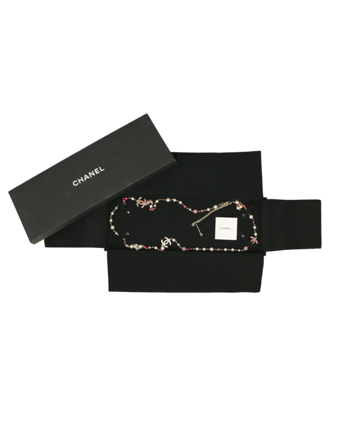 Details : Chanel long necklace, can be doubled. Hook clasp, can be adjusted by up to 3 cm.