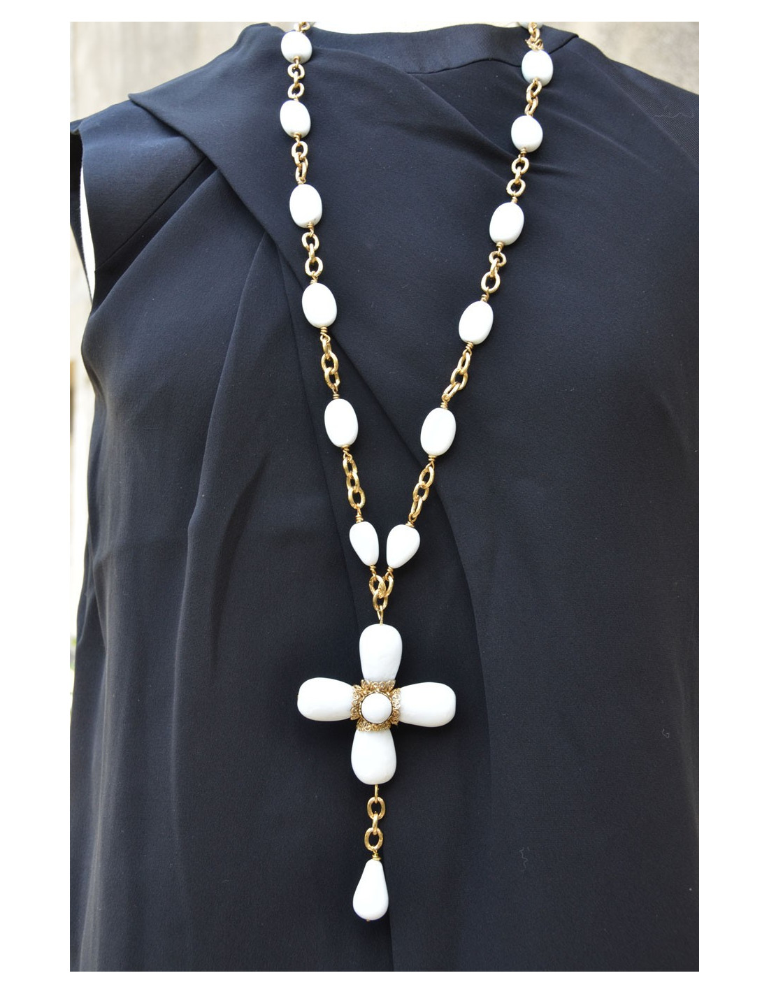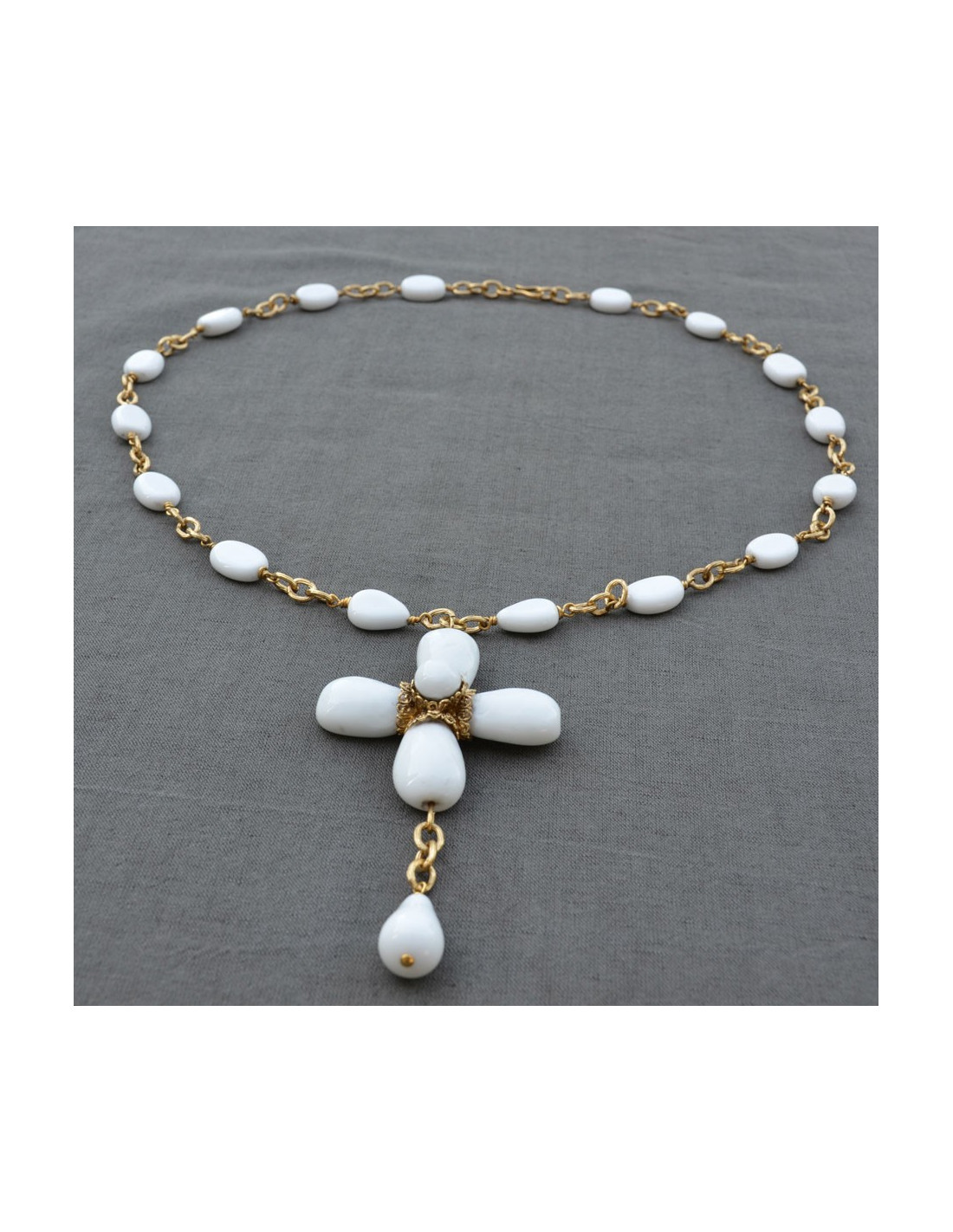 Saltire cross Marguerite de Valois in white glass and metal gold fine gold.