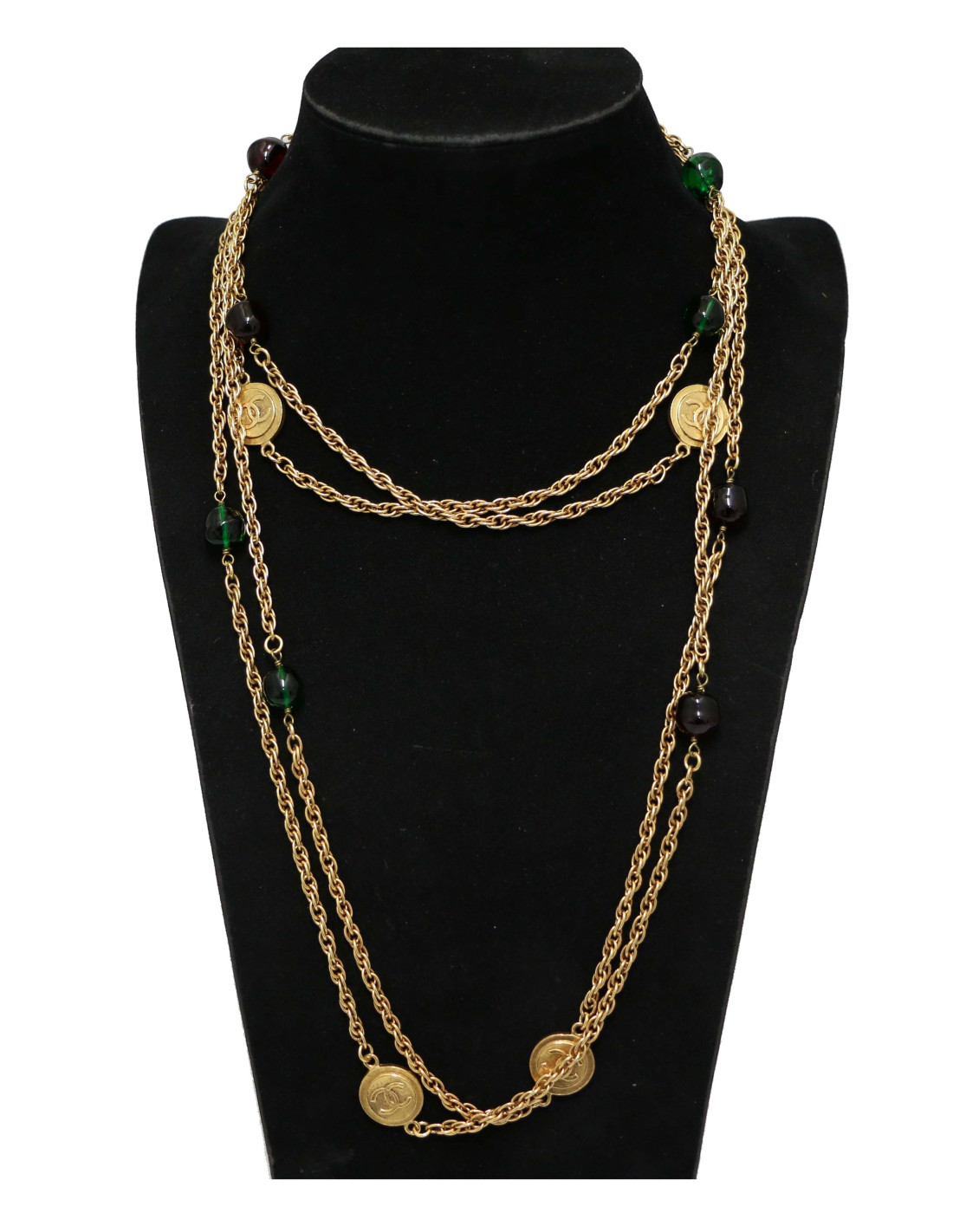 Last items in stock NECKLACES CHANEL vintage baroque molten-glass beads choker CHANEL 36456 1,450.00 € CHANEL vintage baroque molten-glass beads choker Condition : very goodMade in FranceMaterial : pearly molten glass beadsColor : champagneMeasurements : total length 48 cm, adjustable by 6 cmHardware : gold plated metalStamp : noYear : circa 1980Details : beads entirely handmade by GRIPOIX. Some beads have tiny chips, not very visible because the beads are... Add to cart