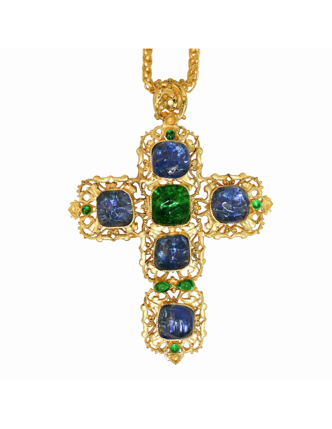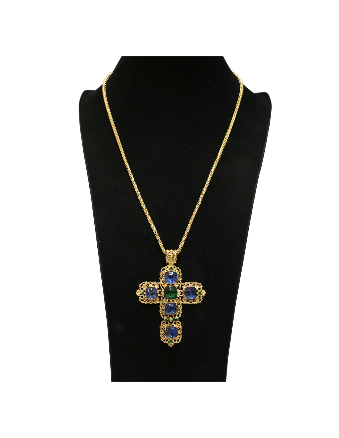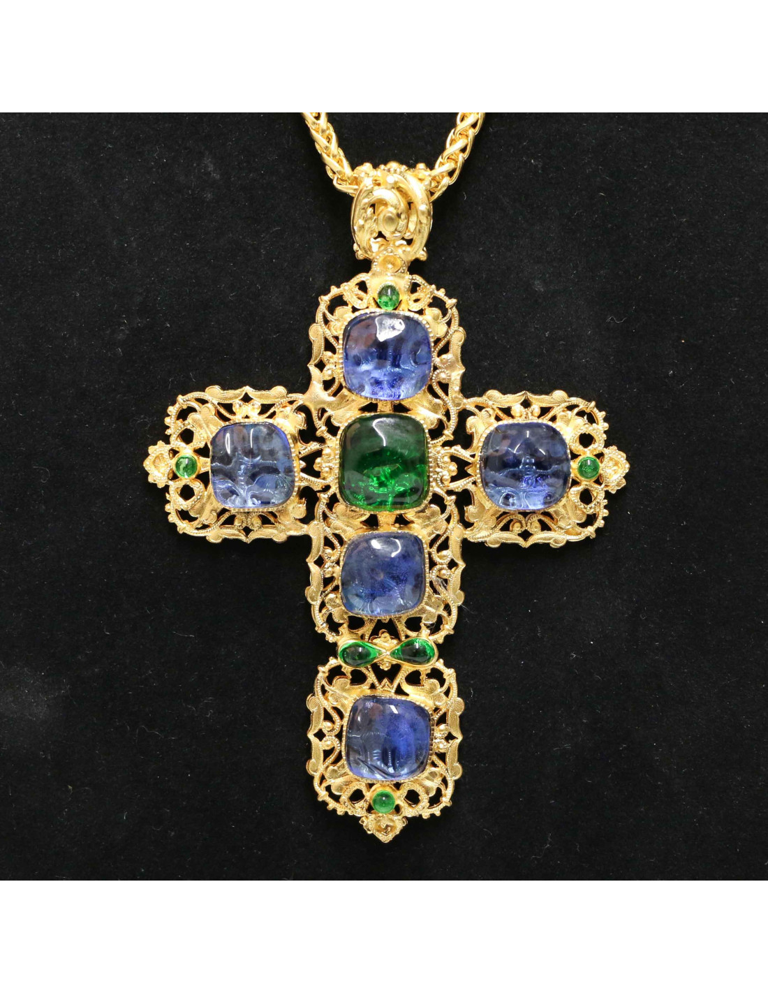 Last items in stock NECKLACES LOULOU DE LA FALAISE choker necklace in gilded metal and dove pendant in molten glass LOULOU DE LA FALAISE 21897 390.00 € Vintage. Loulou de La Falaise choker necklace in golden metal and brilliant Swarovski. It was manufactured at the time by the House Gripoix. The pendant represents a dove made of white molten glass. In very good condition. Size: short neck 35 cm, longer 41 cm, size of the jewel 4x3.5 cm. Will be delivered in a Valois Vintage Paris dustbag. Add to cart