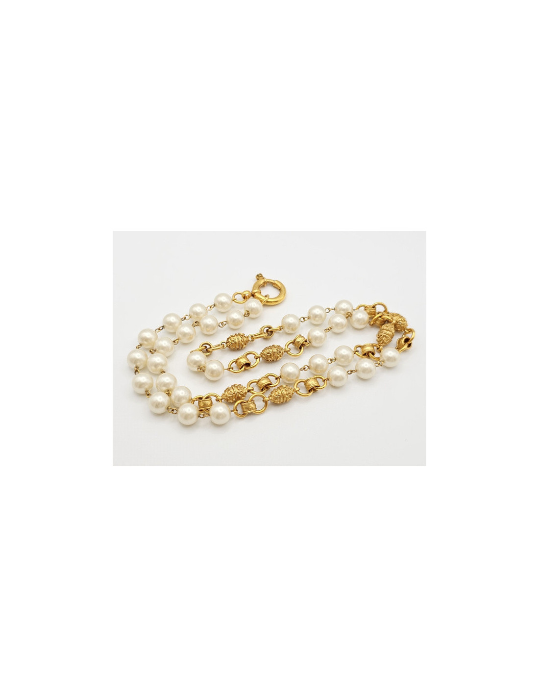 Last items in stock NECKLACES Choker CHANEL pearly baroque beads glass paste CHANEL 36451 1,400.00 € CHANEL choker necklace by GRIPOIX Condition : very goodMade in FranceMaterials : pearly glass paste beadsColor : copper orangeMeasurements : total length 48 cm, adjustable on 6 cm, beads diameter 2 cmGold plated metalStamp: noYear : circa 1980Details : The pearls are entirely handcrafted by the emblematic GRIPOIX house. Some pearls have a few chips, not... Add to cart