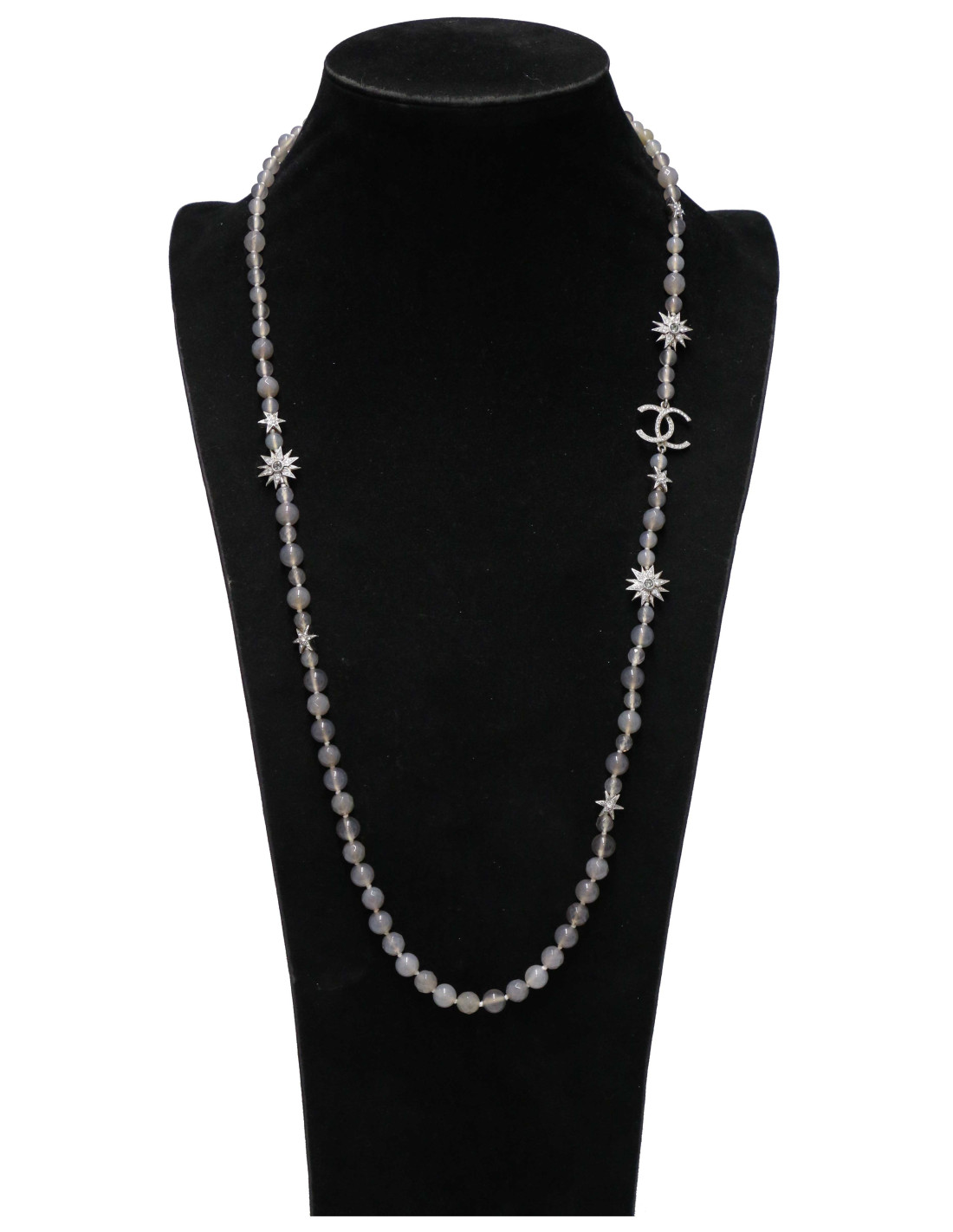 Last items in stock NECKLACES CHANEL molten glass beads and silver leaf insert necklace CHANEL 28490 900.00 € CHANEL molten glass beaded necklace Condition: descentMaterials : molten glass, silverColor : silverMeasurements : neck circumference (adjustble) 53- 58 cmYear : 2000'Hologram: no AUTHENTICITY CERTIFIED by our expert team since 1998. Add to cart