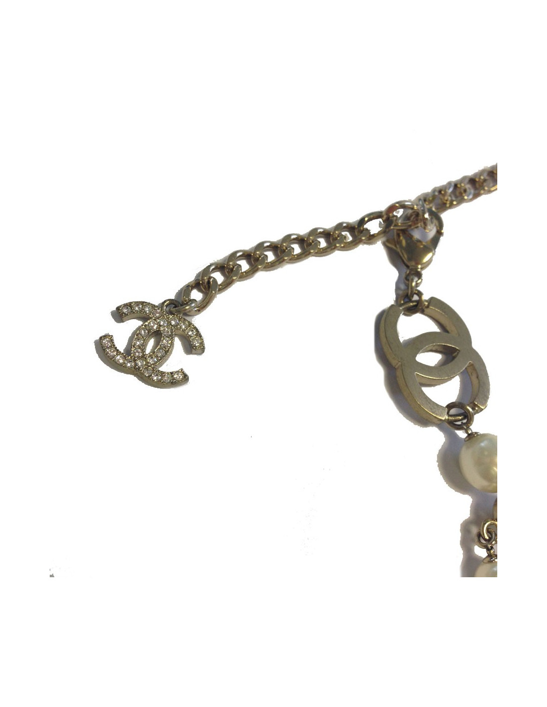 Superb Chanel belt pearly pearls and bow paved with mini pearls and rhinestones, some gilded metal beads with a CC.