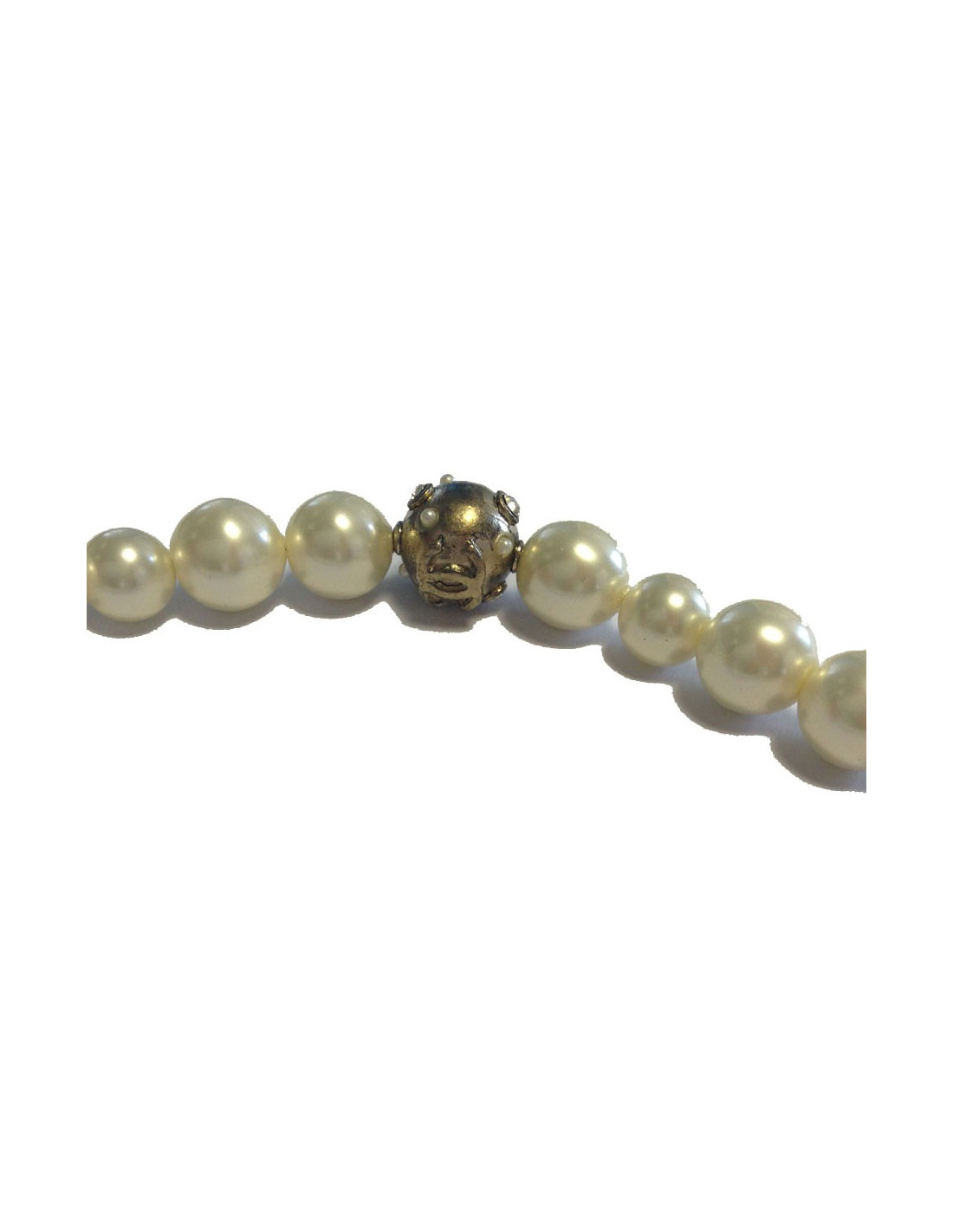 CHANEL pearls belt with a gilded metal bow set with rhinestones