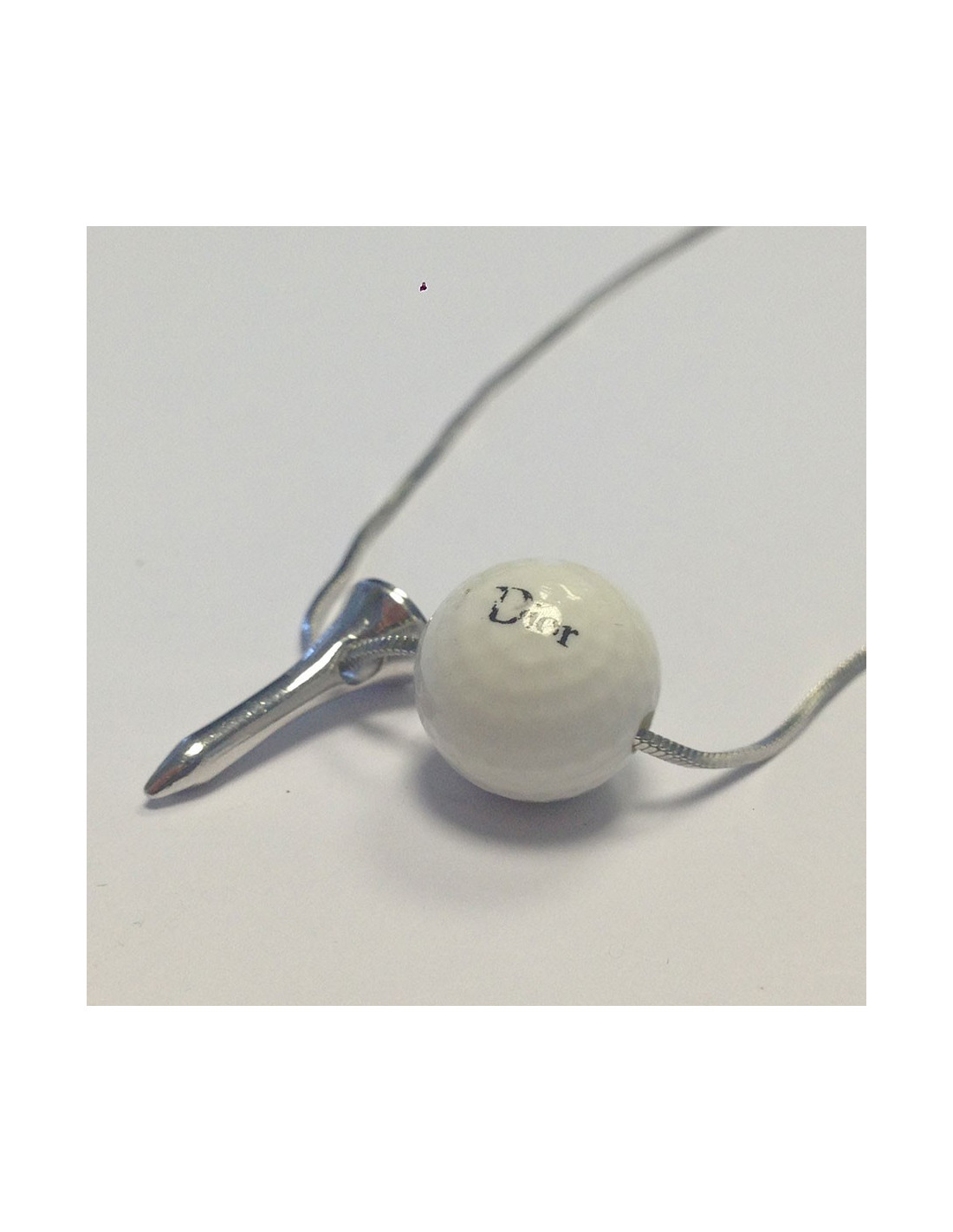 Necklace "Golf ball" by Dior. It behaves in a ball golf and a tee in silvery metal. In very good condition. The "Dior" registration on the ball is cleared slightly. See photos.