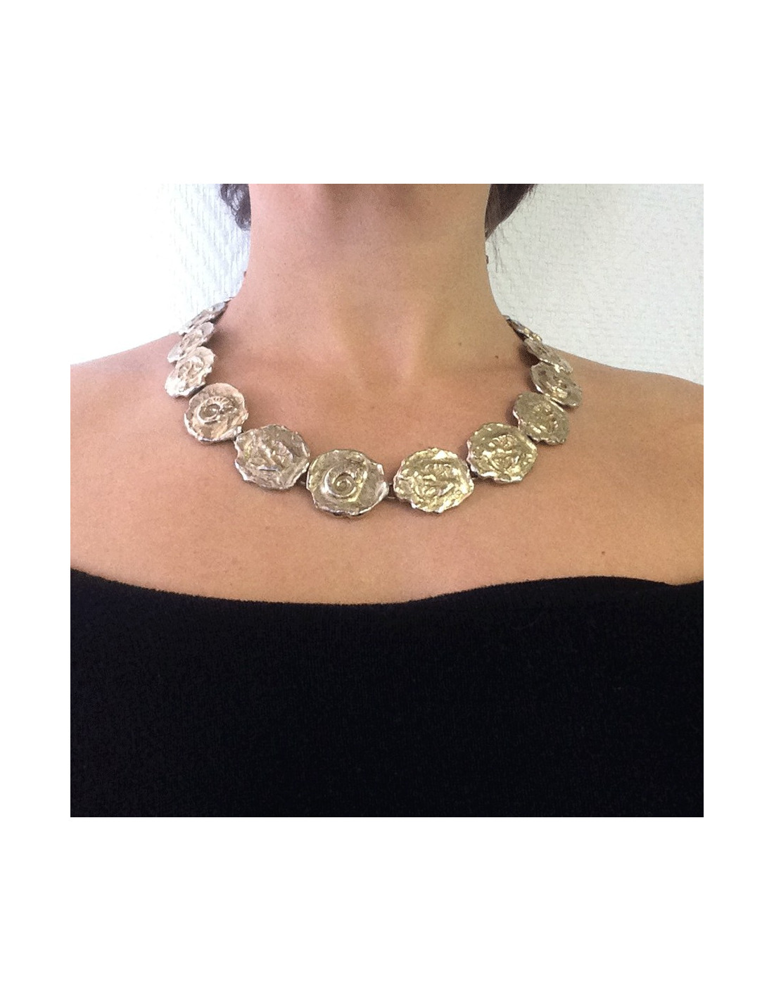Last items in stock NECKLACES CHANEL vintage baroque molten-glass beads choker CHANEL 36456 1,450.00 € CHANEL vintage baroque molten-glass beads choker Condition : very goodMade in FranceMaterial : pearly molten glass beadsColor : champagneMeasurements : total length 48 cm, adjustable by 6 cmHardware : gold plated metalStamp : noYear : circa 1980Details : beads entirely handmade by GRIPOIX. Some beads have tiny chips, not very visible because the beads are... Add to cart