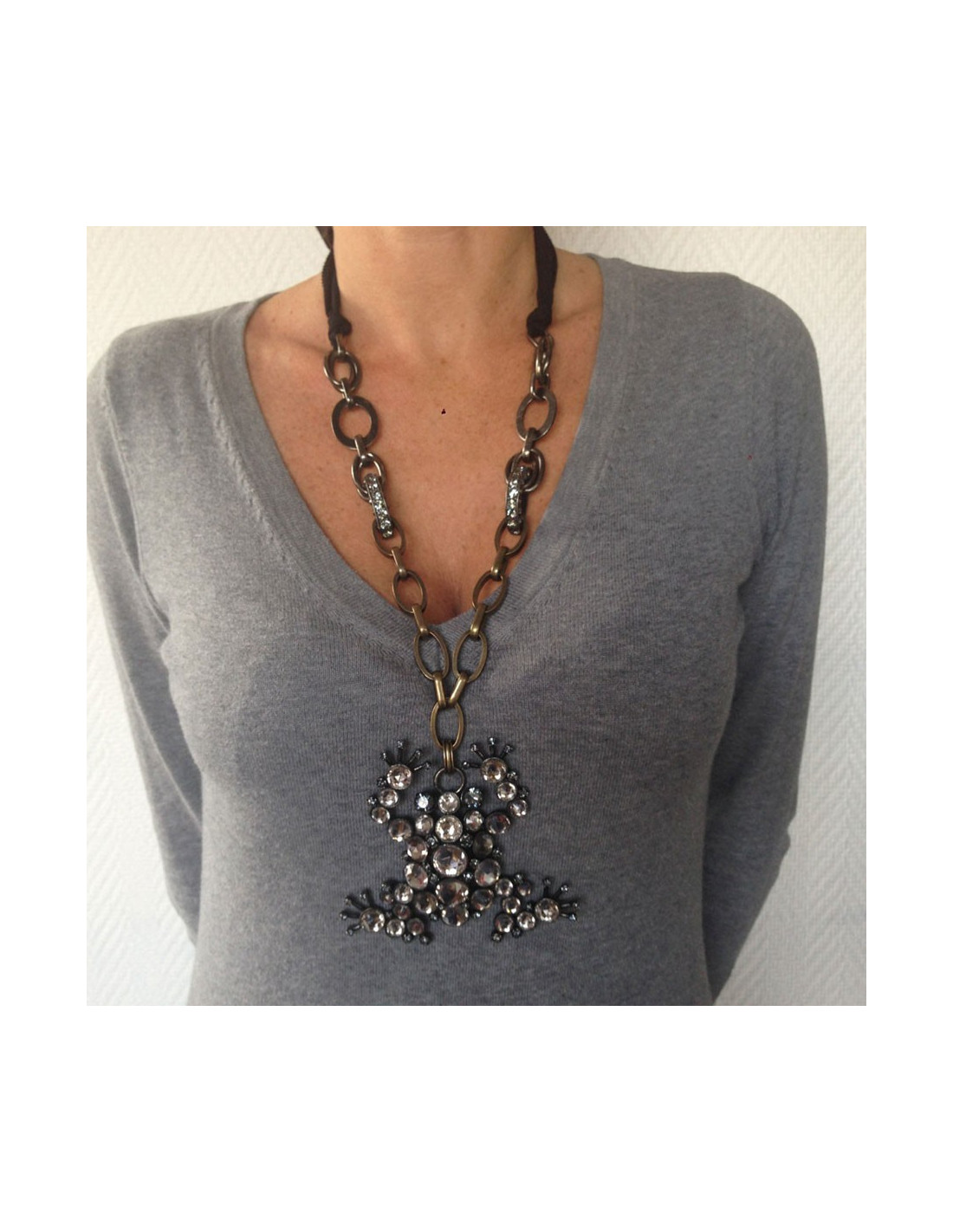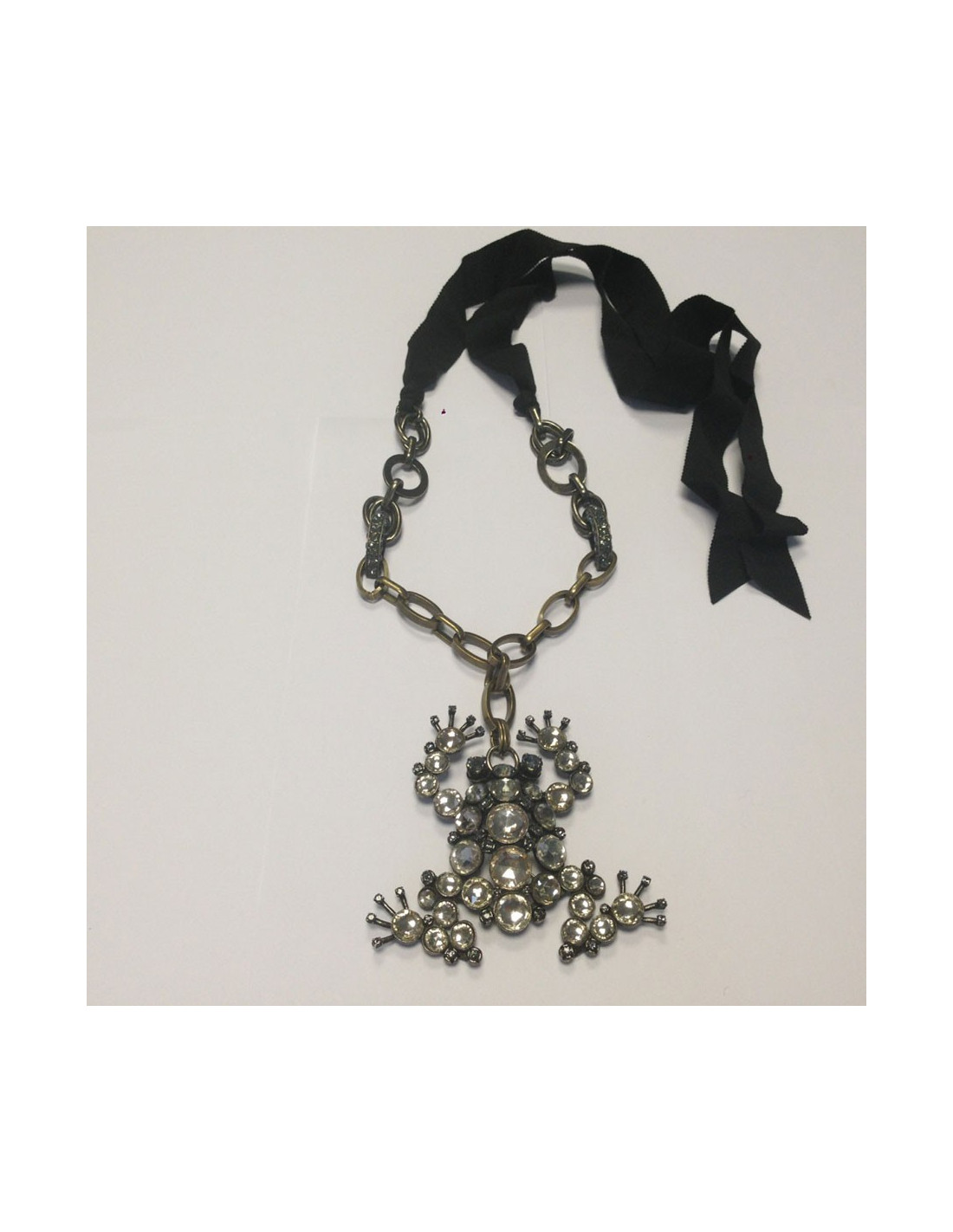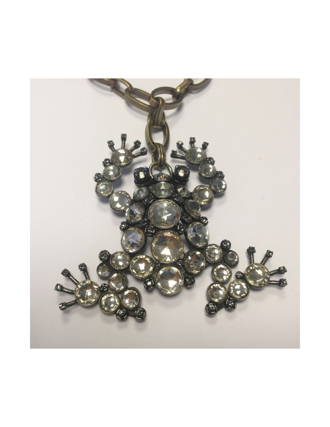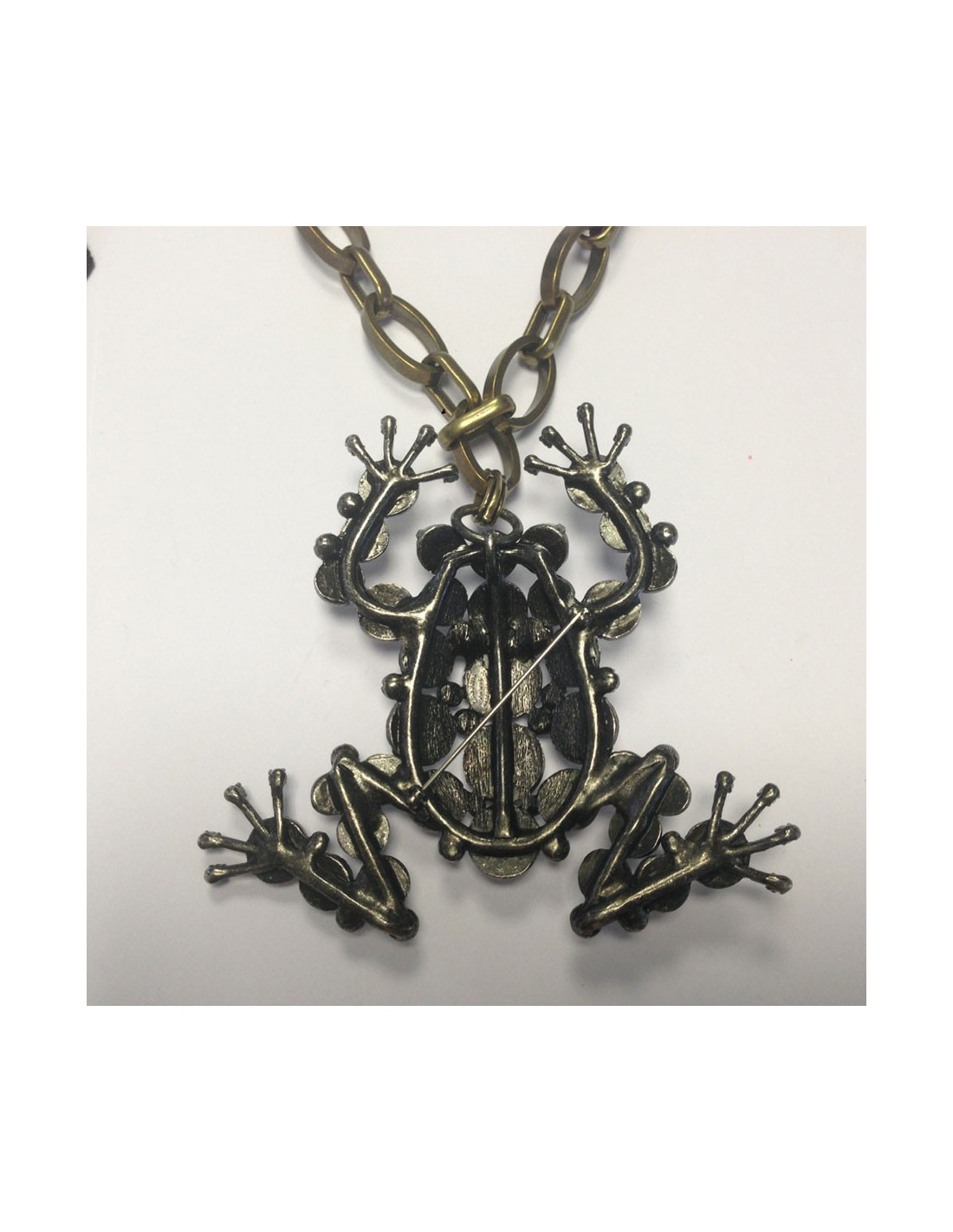 Beautiful necklace - brooch pendant Art Deco frog, the Lanvin House, fully paved of faceted crystals, chain in brass. Attach Ribbon coarse black. The pendant can also be worn as a brooch. Never worn.