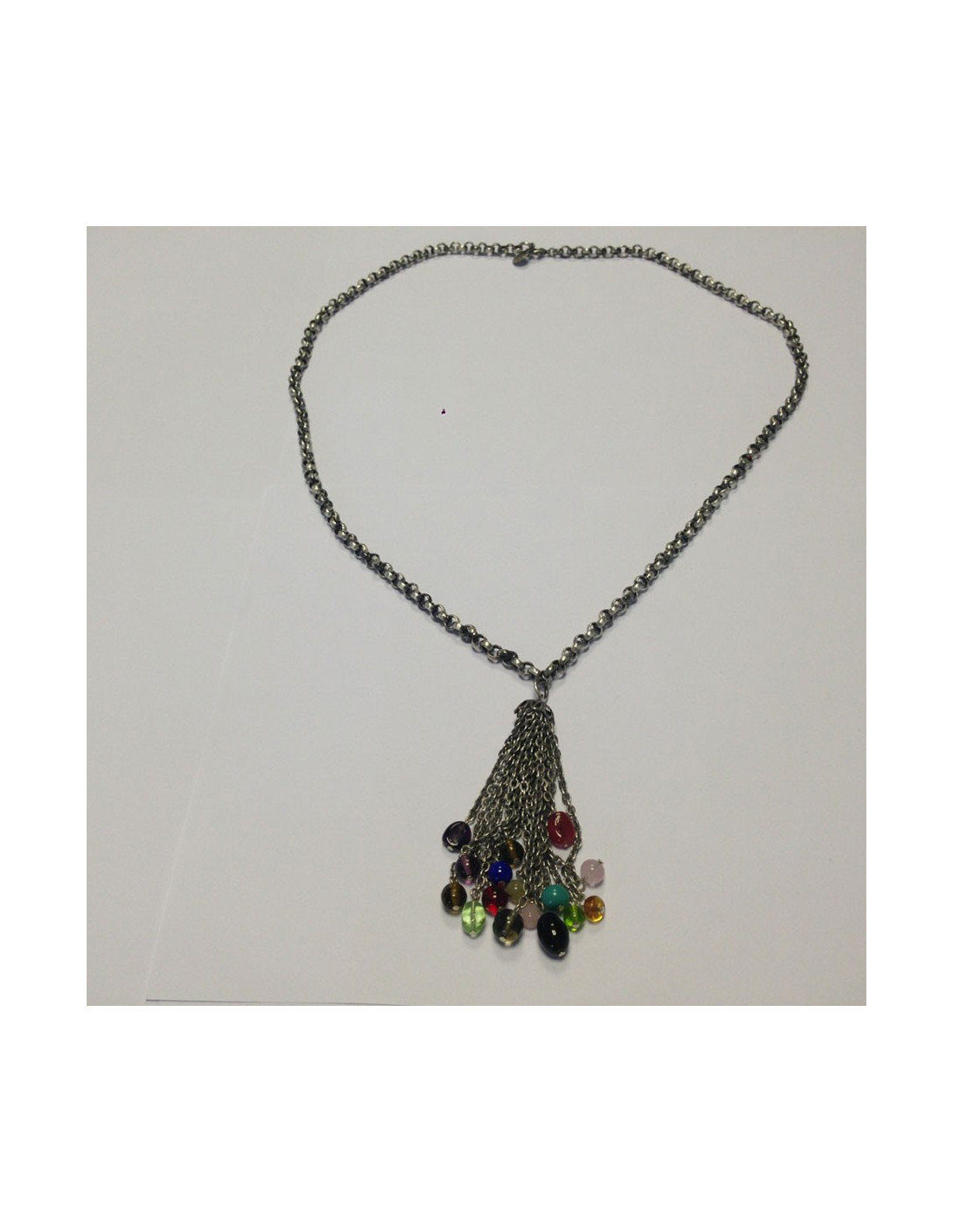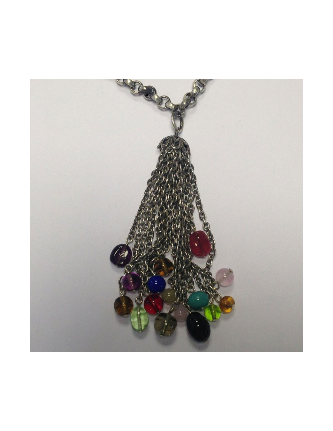 Beautiful necklace adorned with Marguerite de Valois with pendant pendant small silver, chain of multicolored glass beads. Never worn.