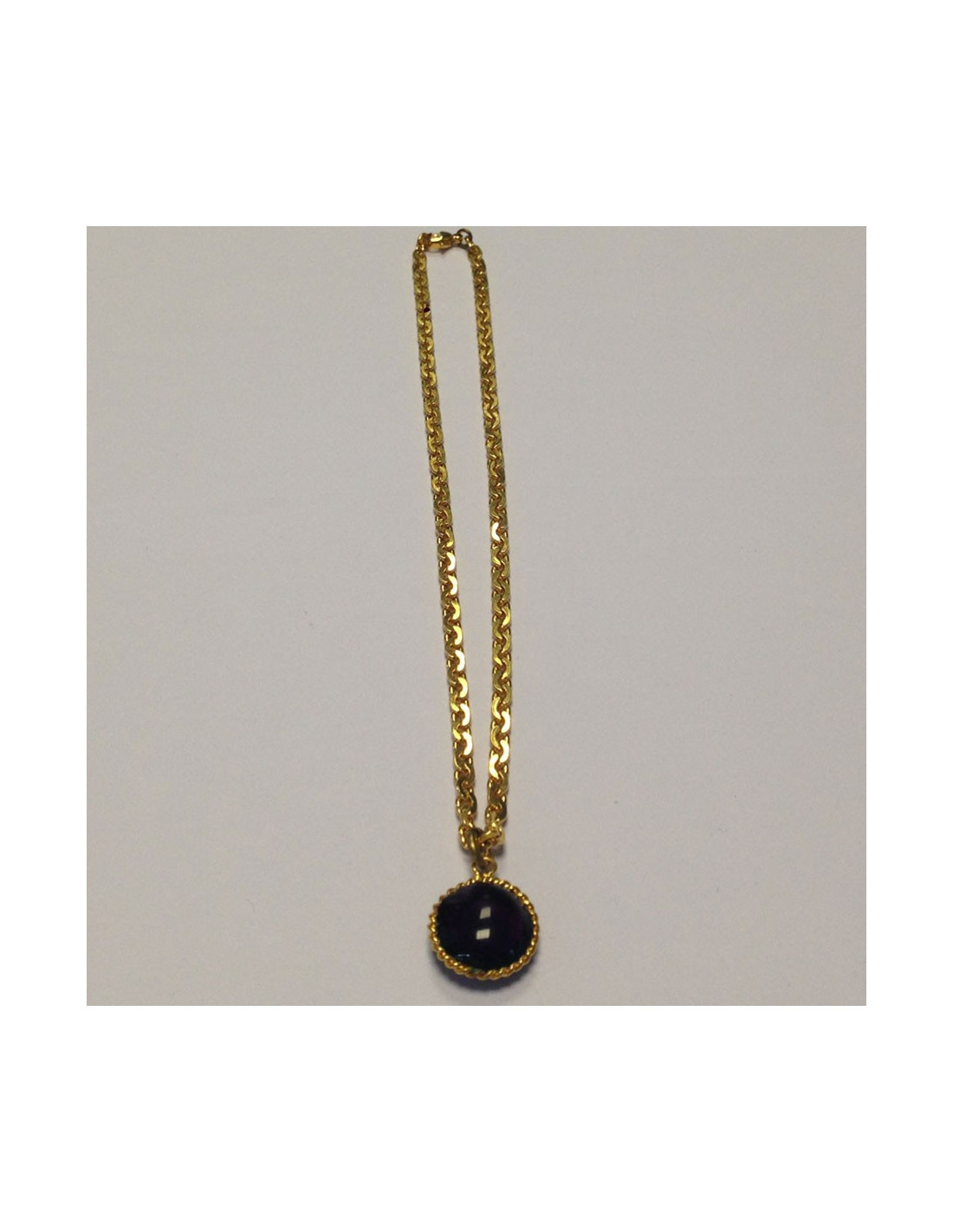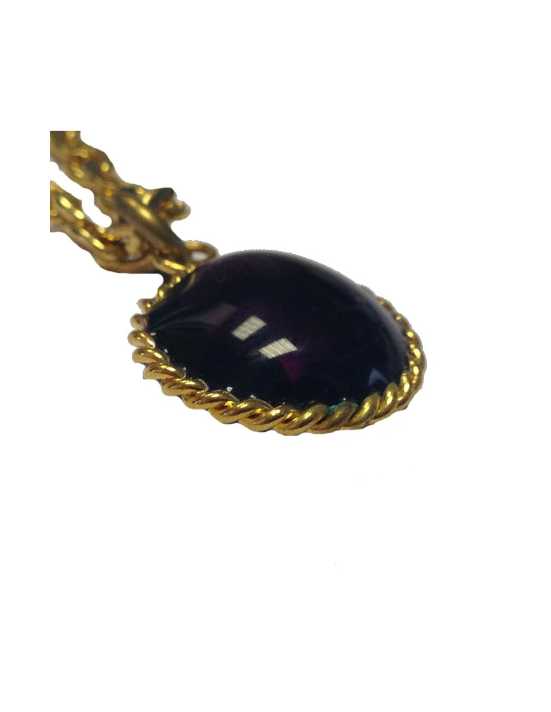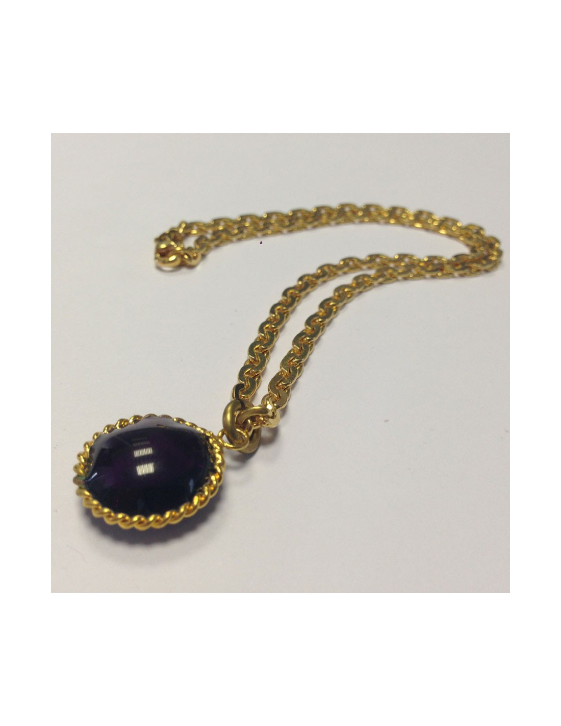 Necklace Marguerite de Valois, purple cabochon on chain Golden glass paste.