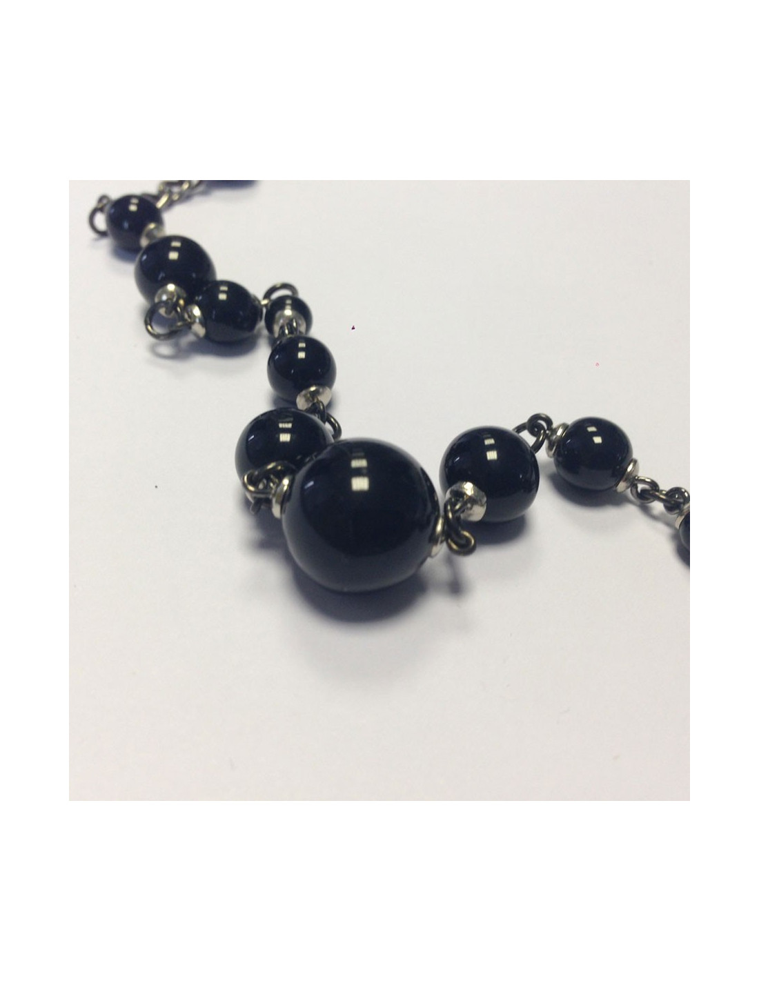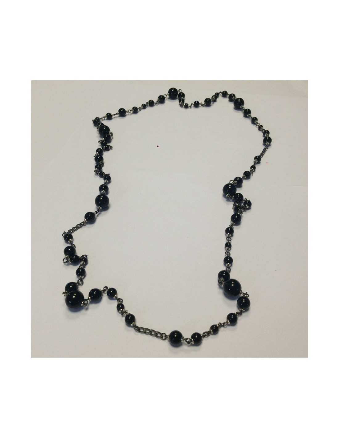 Couture, Saltire Marguerite de Valois decorated with black glass paste beads, chain silver. Can be worn as a single or double tour according to your desires. Never worn.