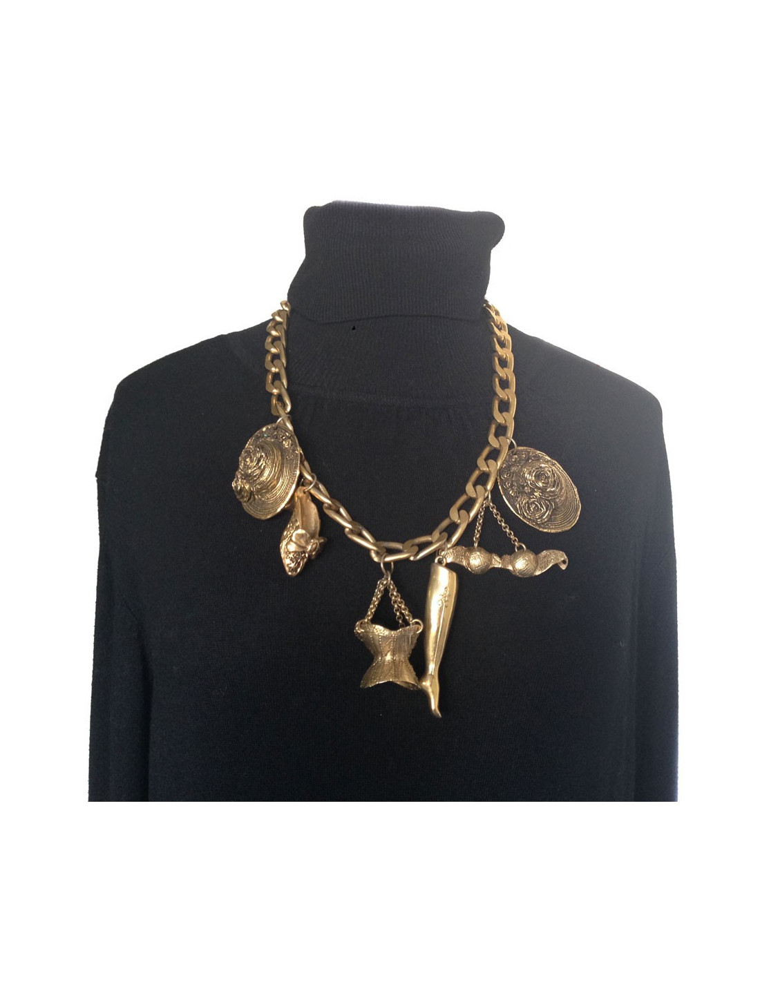 Original and collector! CHANTAL THOMAS necklace adorned with symbols of the brand such as the corset, the mule... String all aged gold metal mesh and symbols. Clasp in T. very good condition.