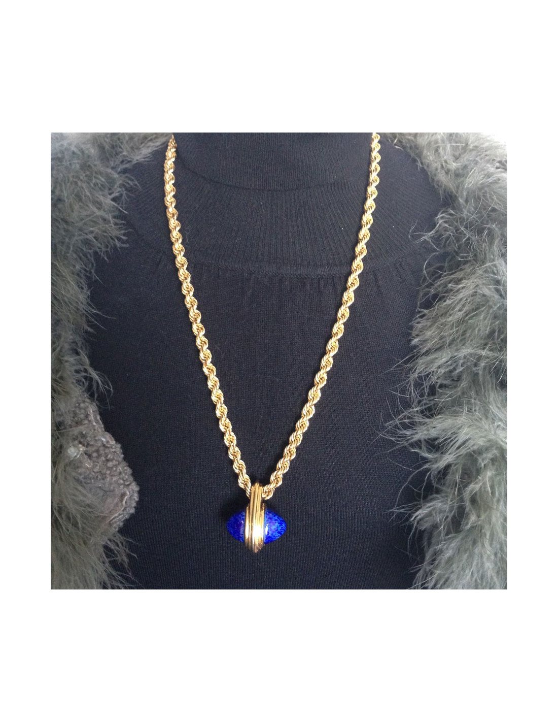 Unsigned chain necklace in gilt metal with pendant