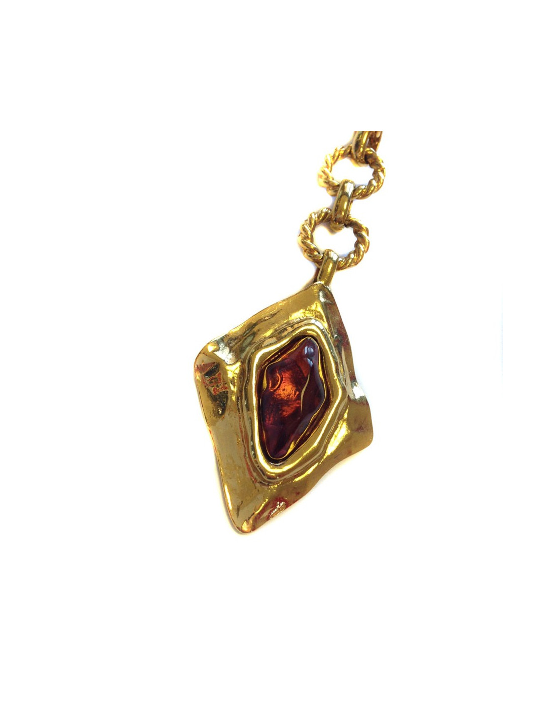 Great Belt-Saltire YVES SAINT LAURENT gold metal. String twisted rings, closing in T, gold metal pendant, amber effect crumpled with a resin color inlay.