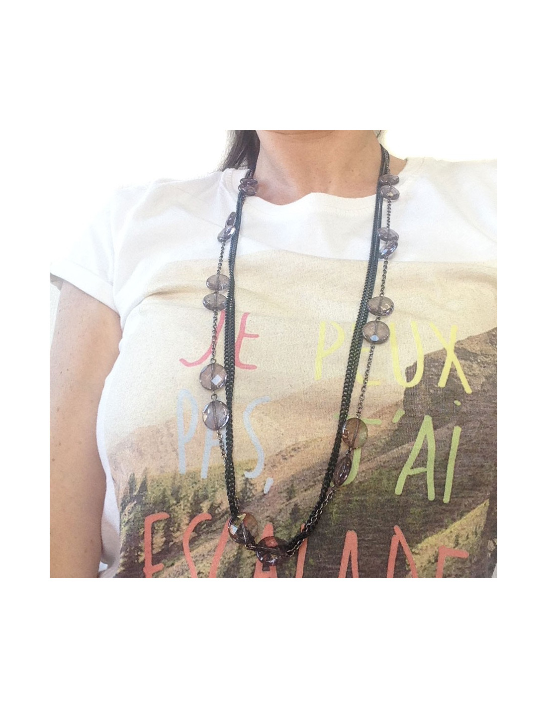 MARGUERITE de VALOIS silver chain and faceted beads multi-row long necklace