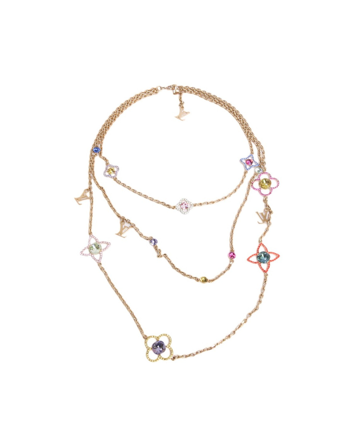 LOUIS VUITTON necklace triple ranks multicolor gilded metal