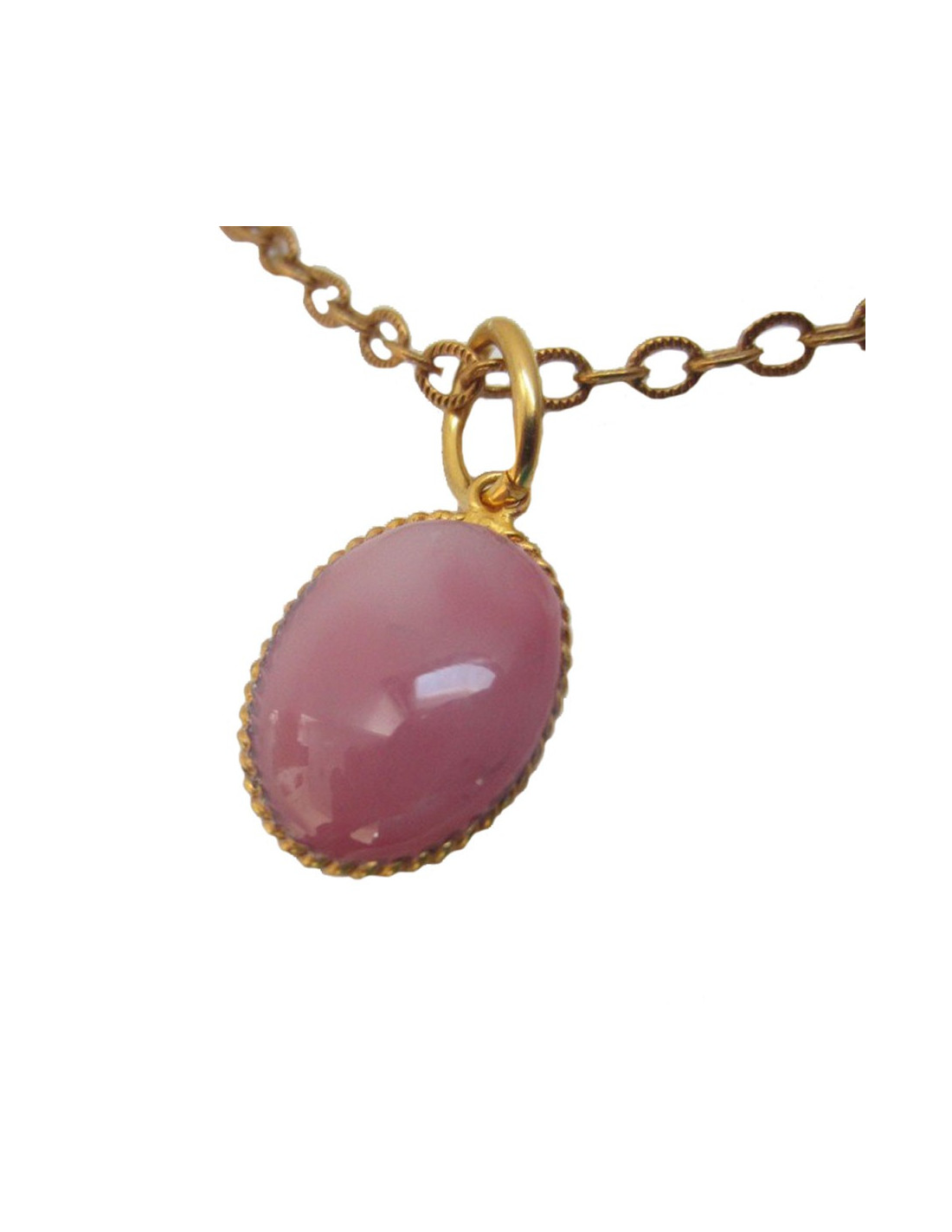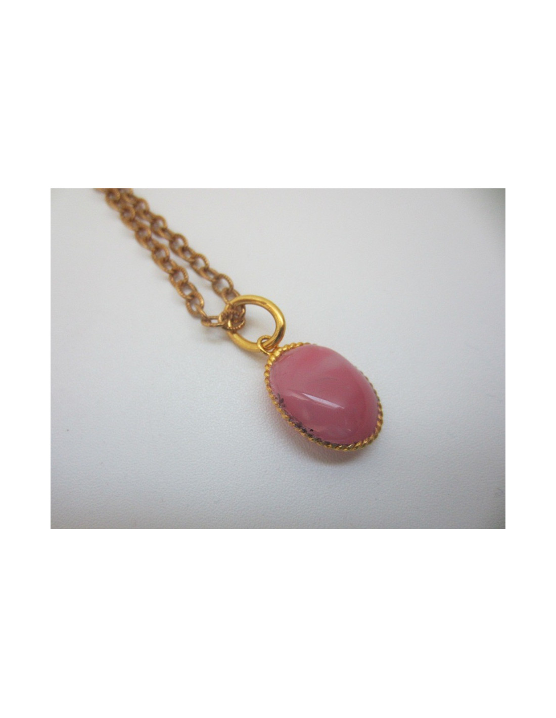 Marguerite of Valois pendant necklace, oval metal Golden end & pink glass