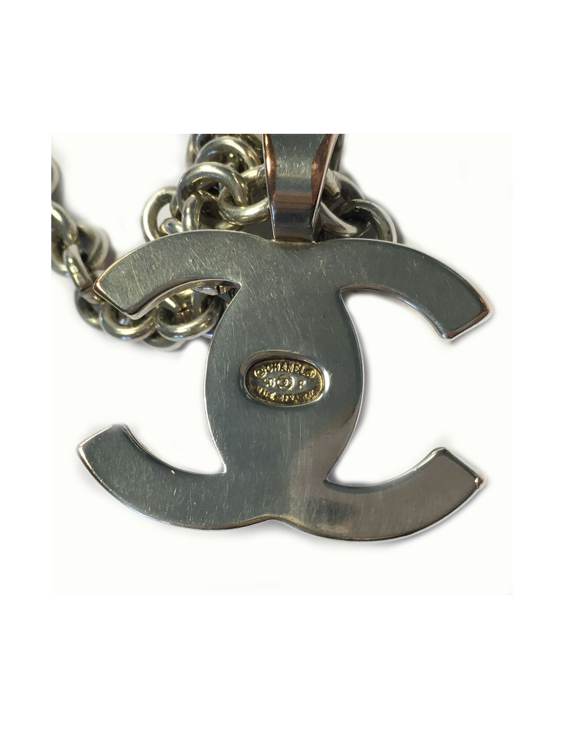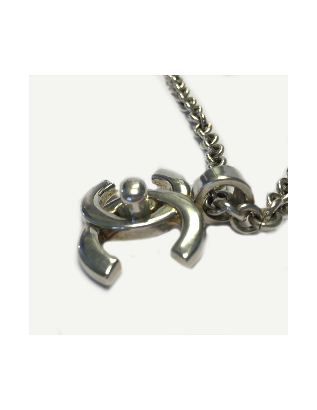 CHANEL chain and pendant CC silver plated necklace.
