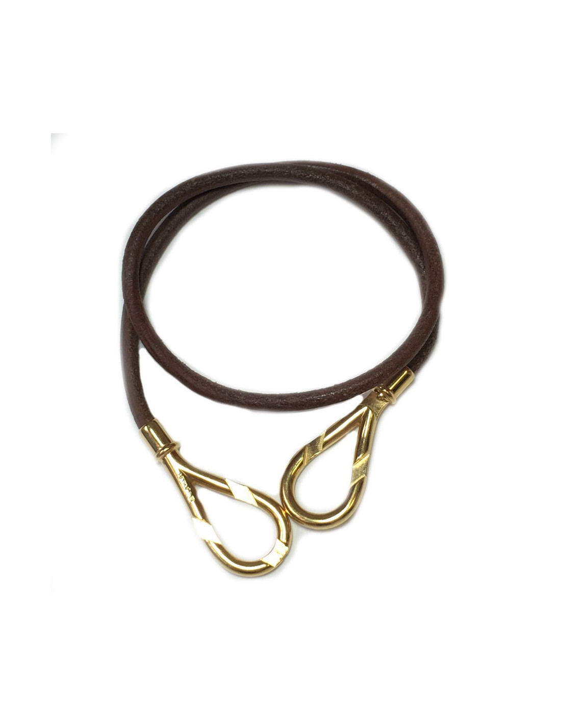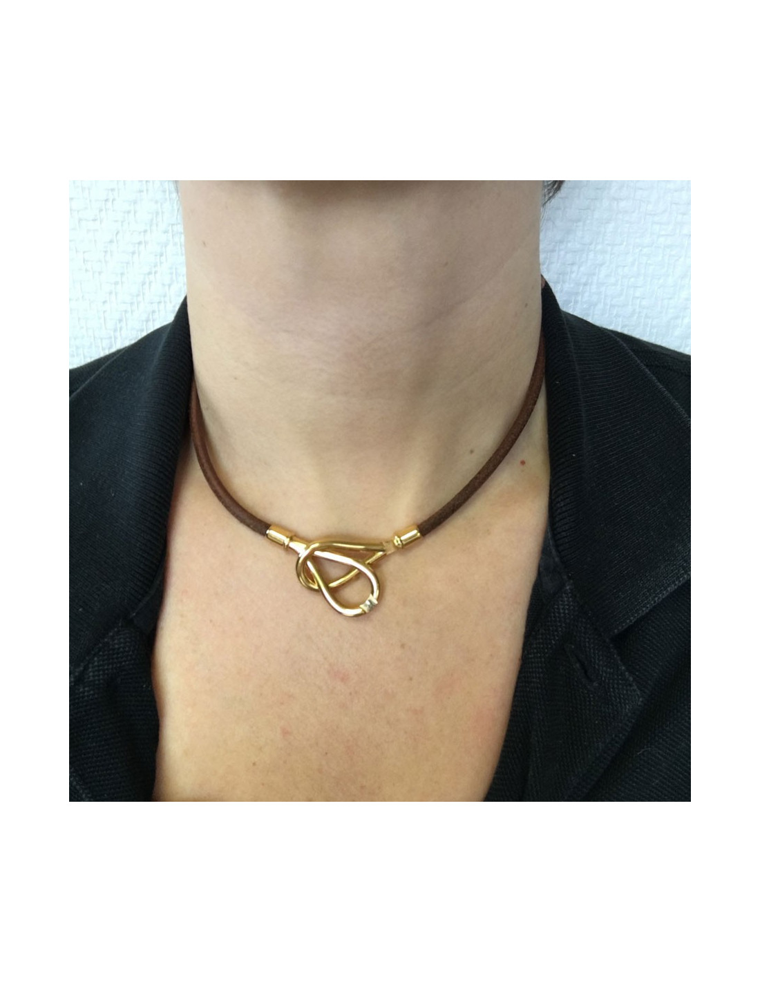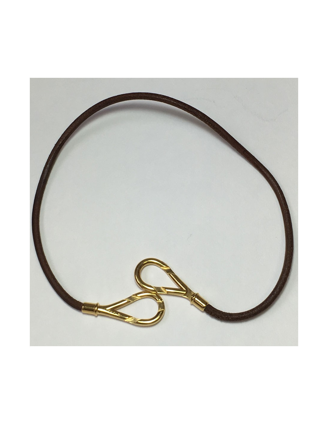 HERMES Leather Brown and gold plated necklace