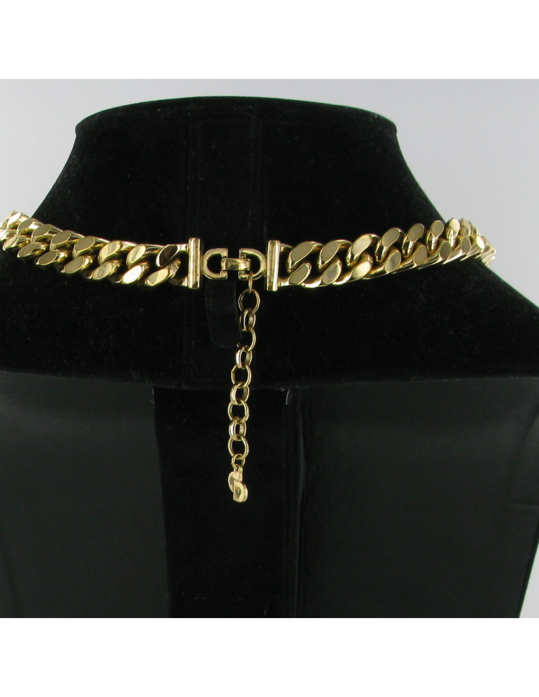 New Last items in stock NECKLACES Vintage gold CHANEL necklace strass CHANEL 40420 2,150.00 € Vintage gold CHANEL necklace Condition: very good conditionMade in FranceMaterial: metal, rhinestonesColor: goldDimensions: total length 92 cmStamp: yesYear: 1971-1980Hardware: gold metalDetails: imposing necklace composed of alternating gold square links with a grid pattern and transparent crystal-style cabochons. Add to cart