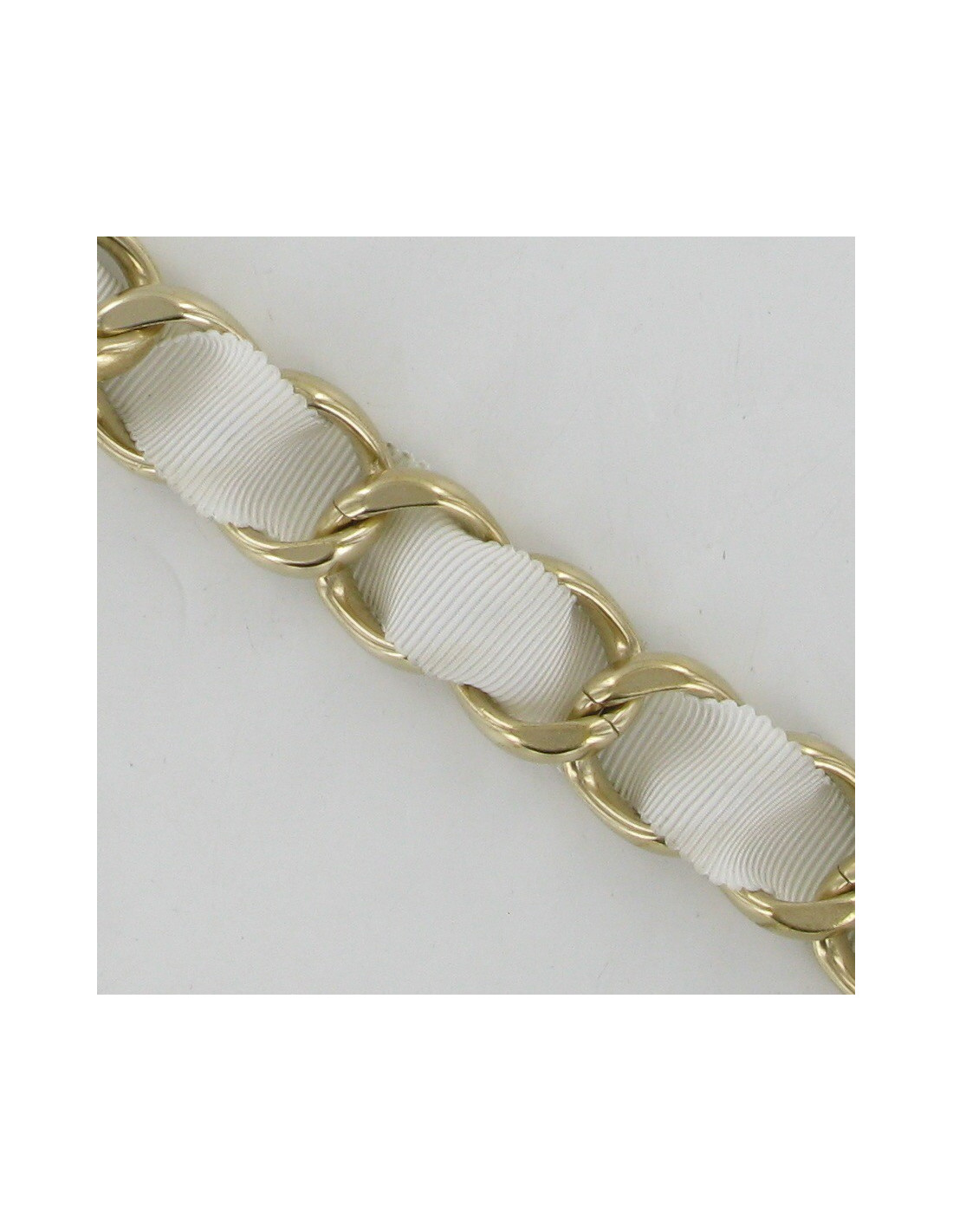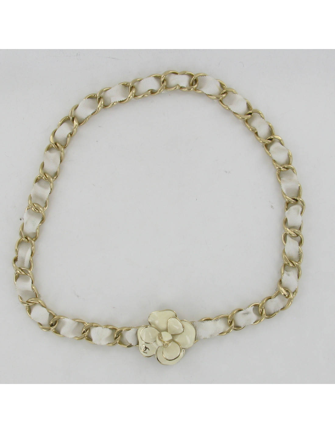 Fabric and gold metal chain white, Camellia gold metal enamelled white.