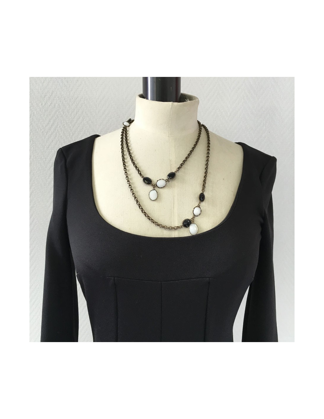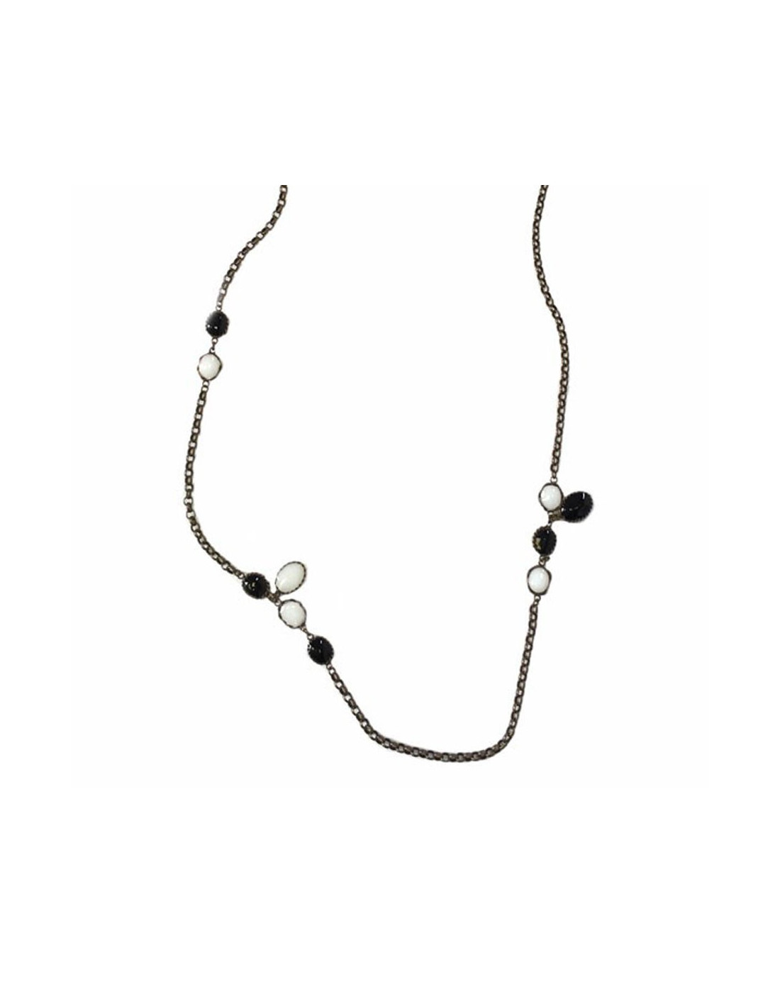 Necklace MARGUERITE of VALOIS gold chain and black and white glass paste