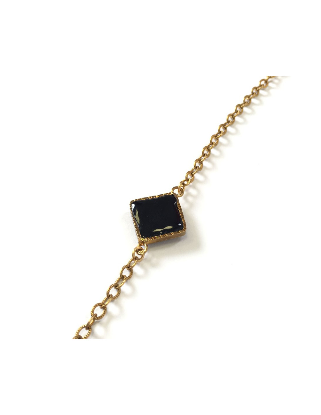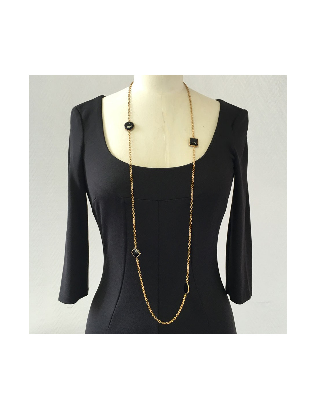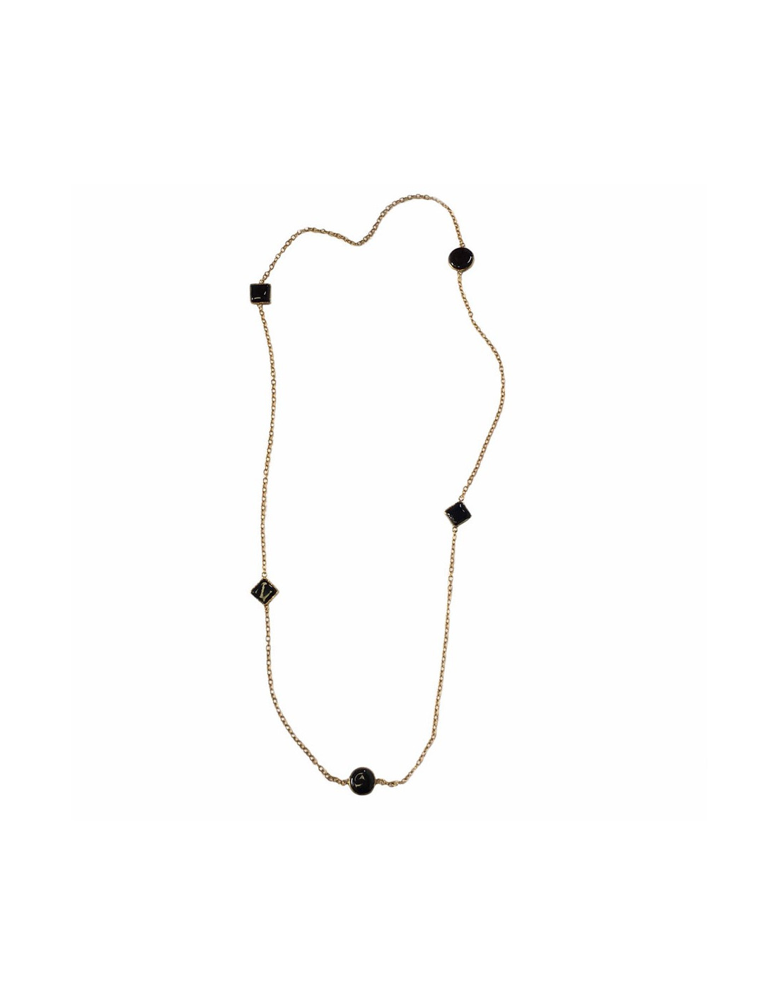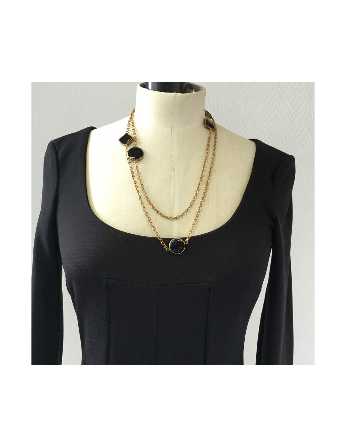 MARGUERITE of VALOIS golden chain and glass paste black necklace