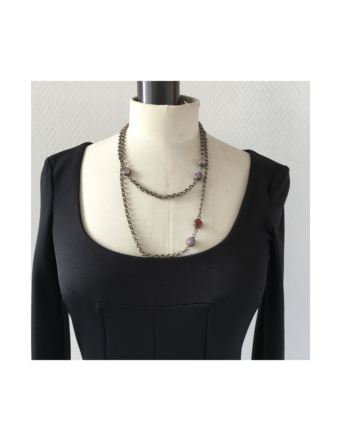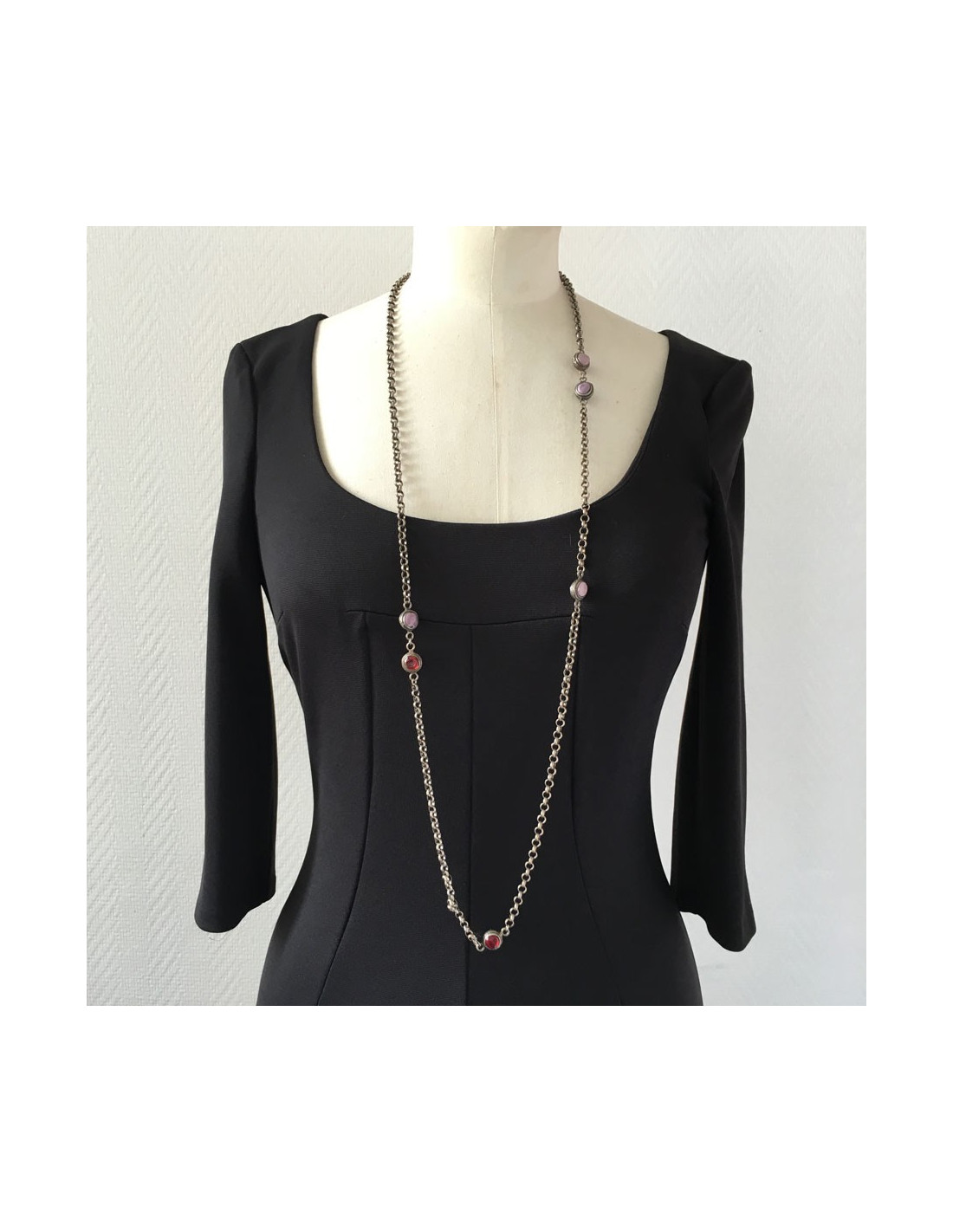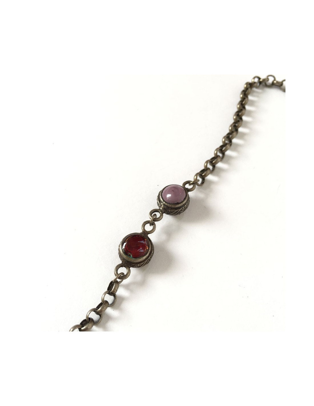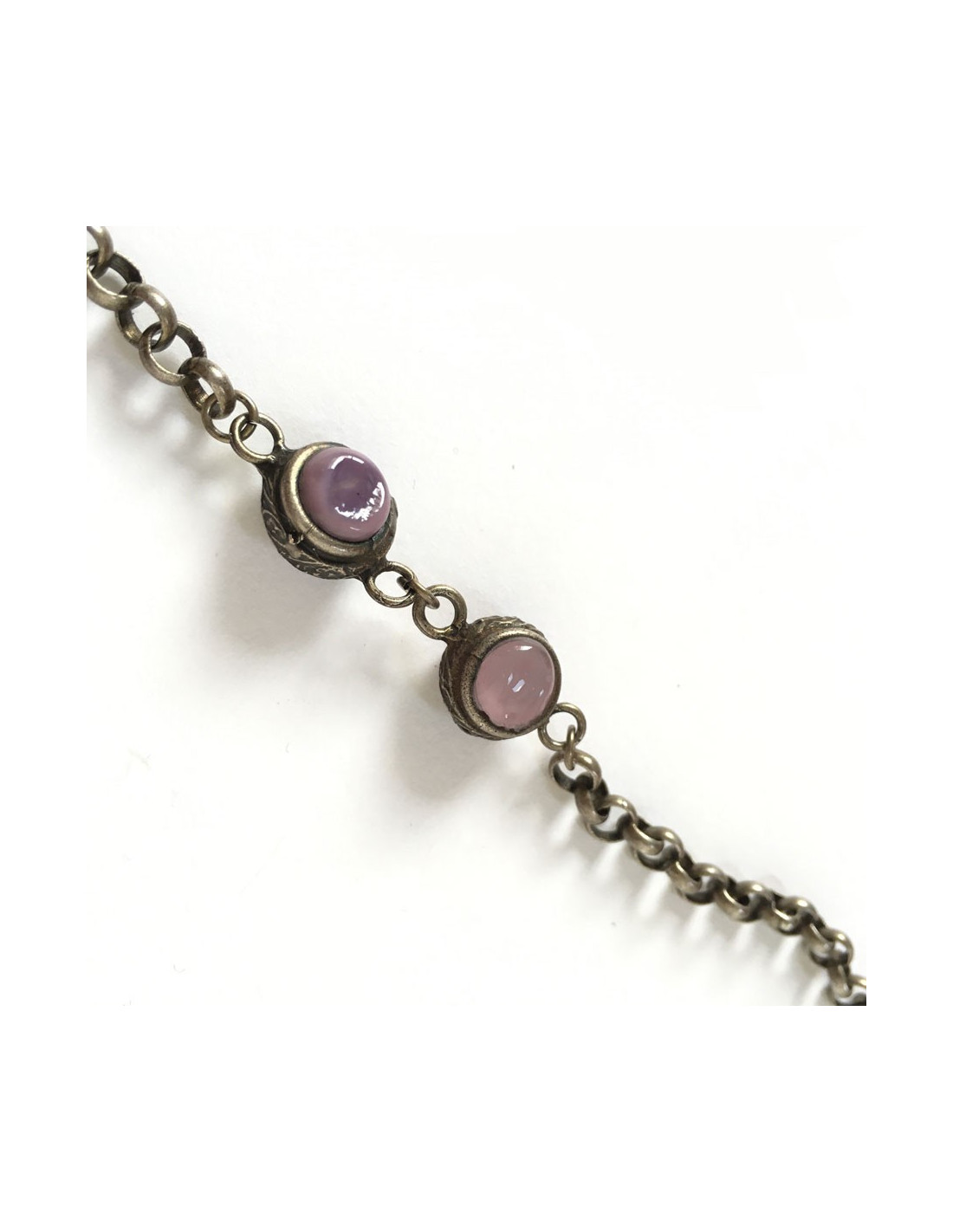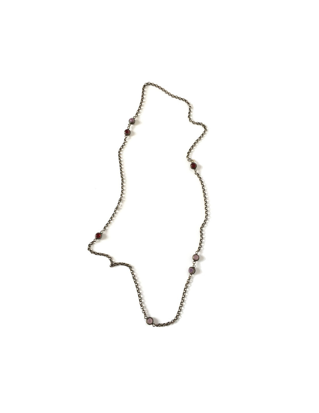 MARGUERITE of VALOIS aged silver chain with purple and burgundy molten glass beads