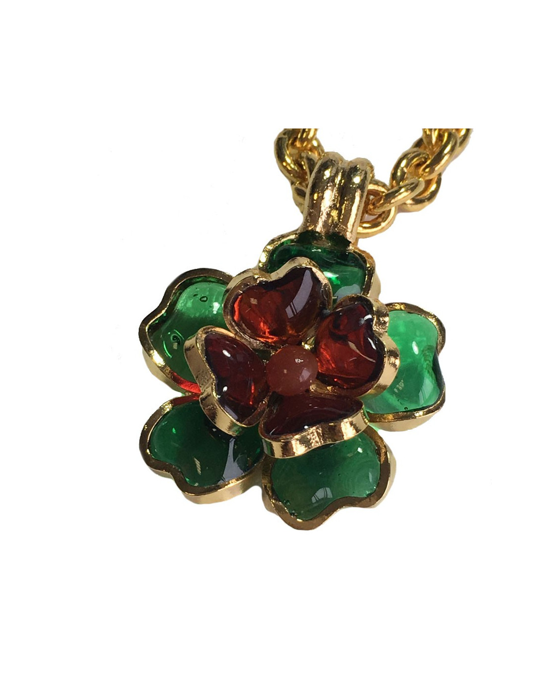 MARGUERITE de VALOIS amber and emerald molten glass flower necklace
