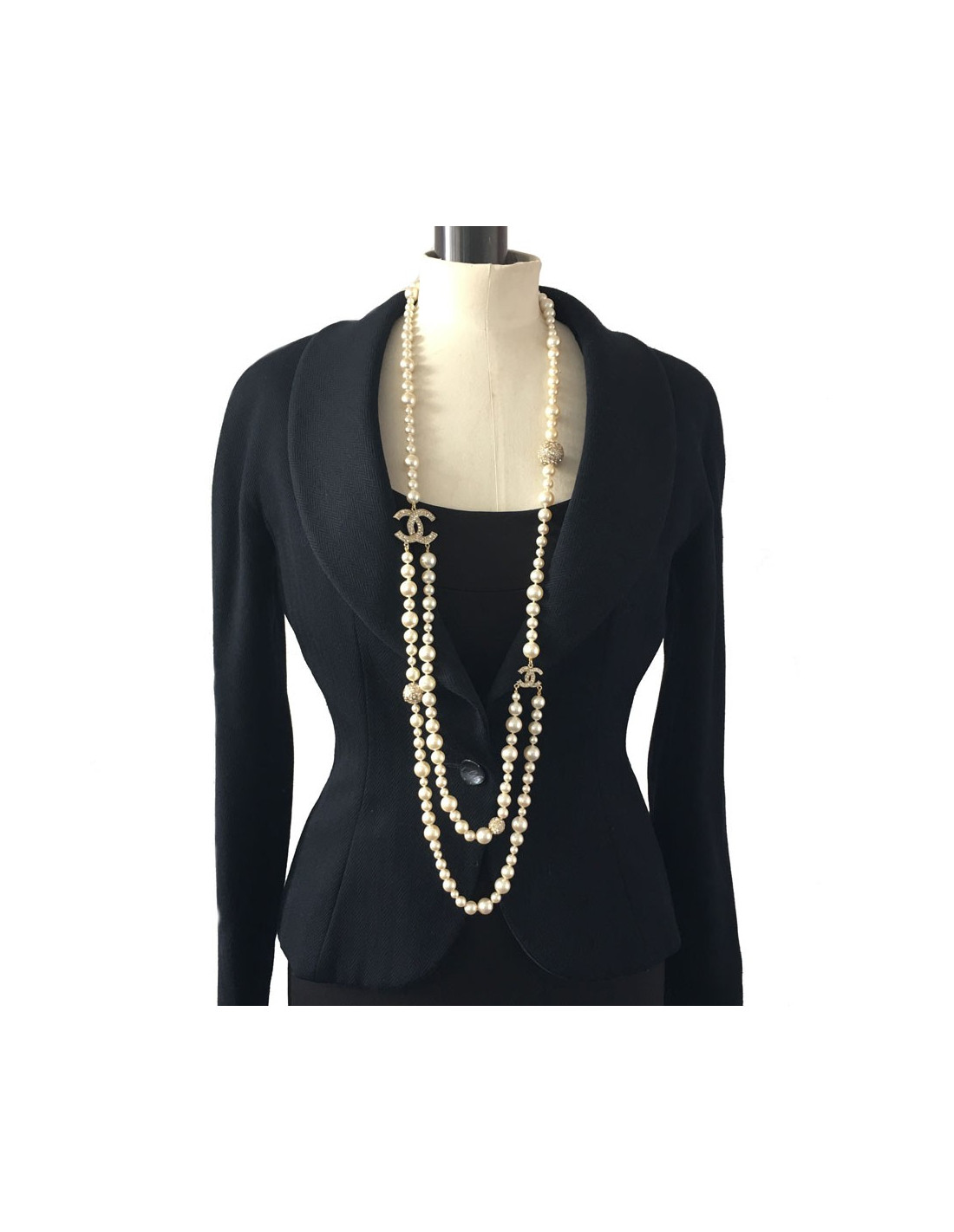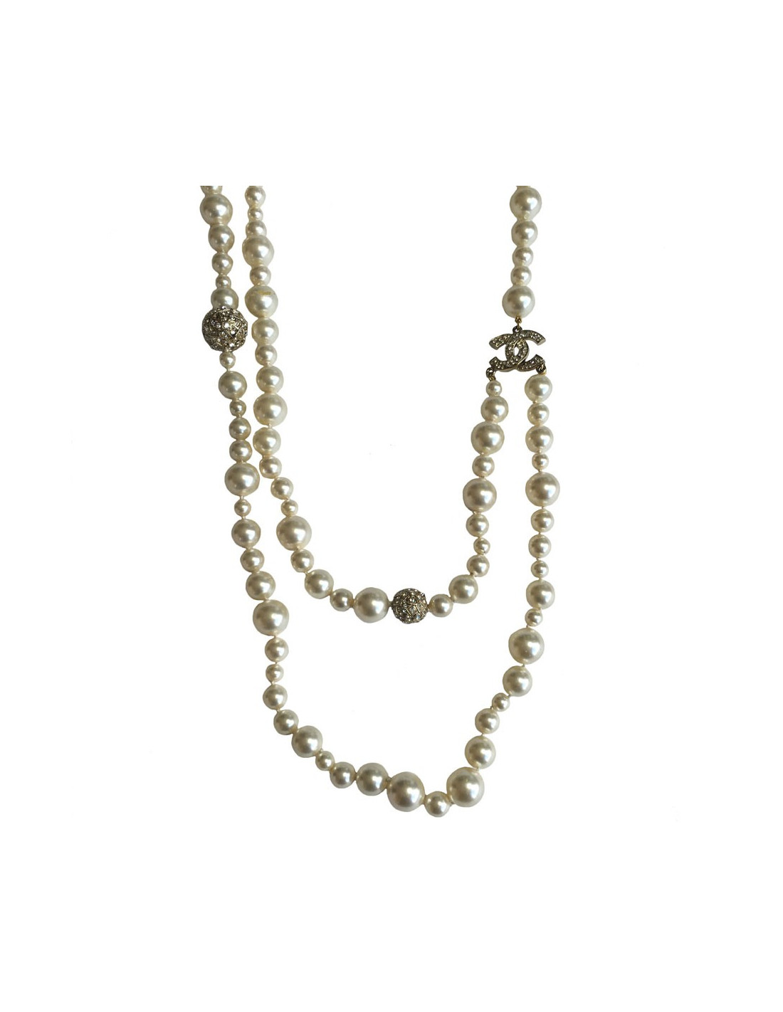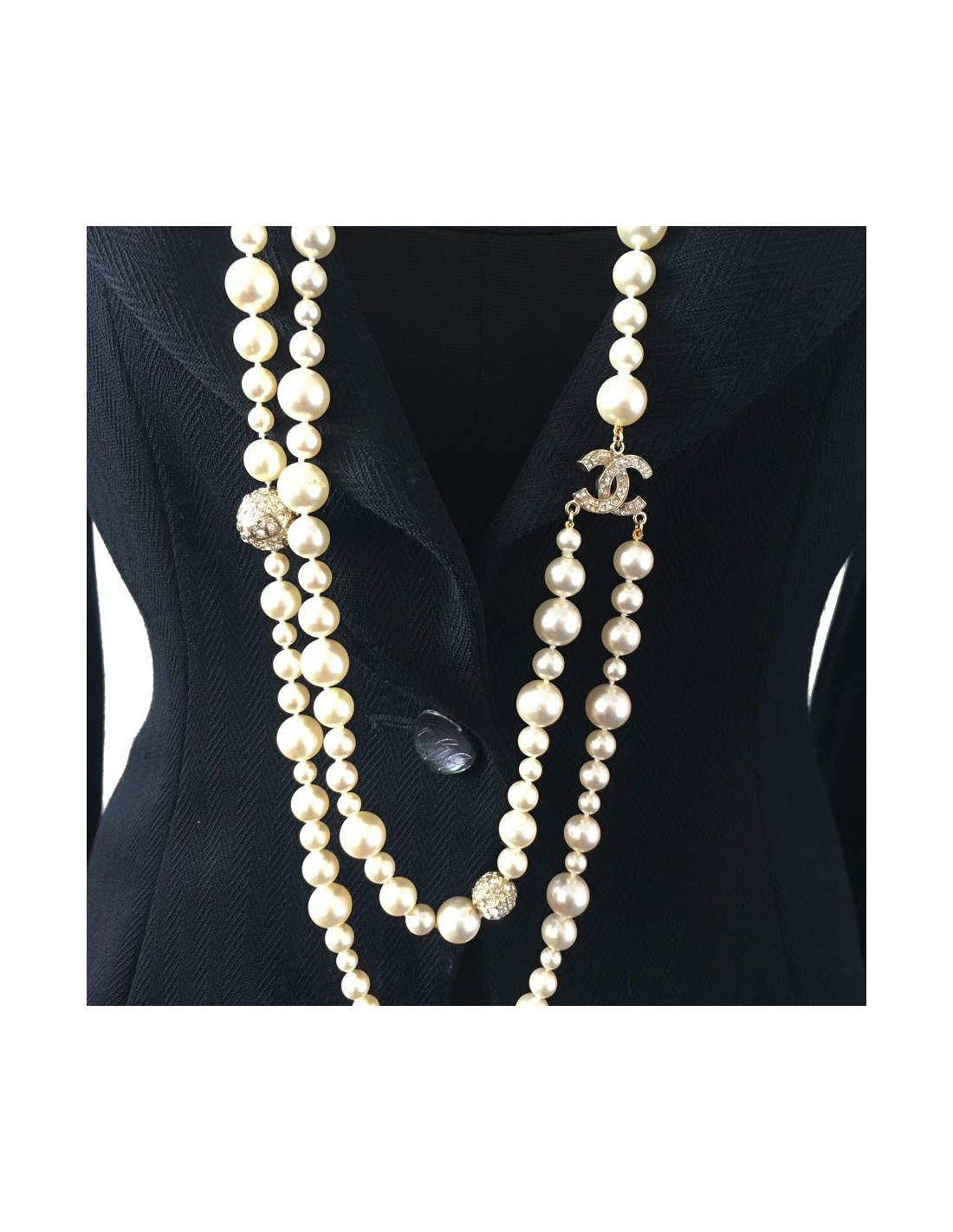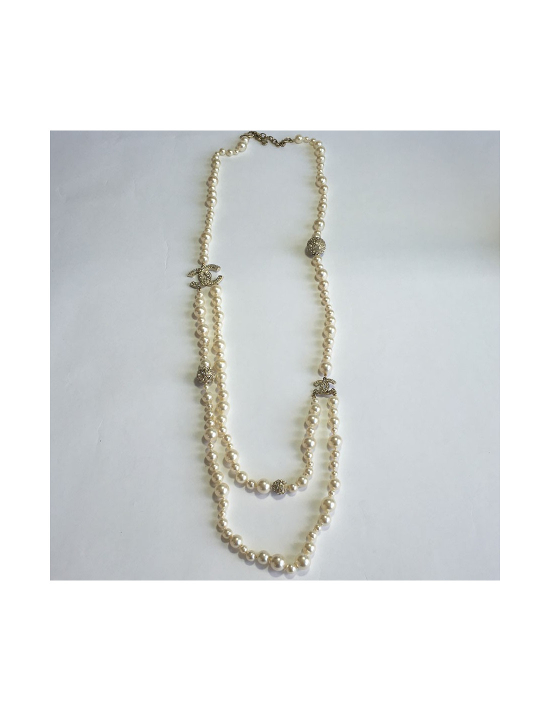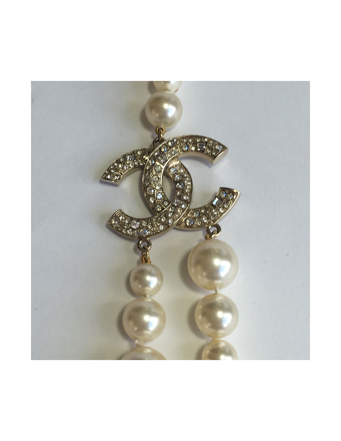 Sautoir CHANEL double en perles et strass