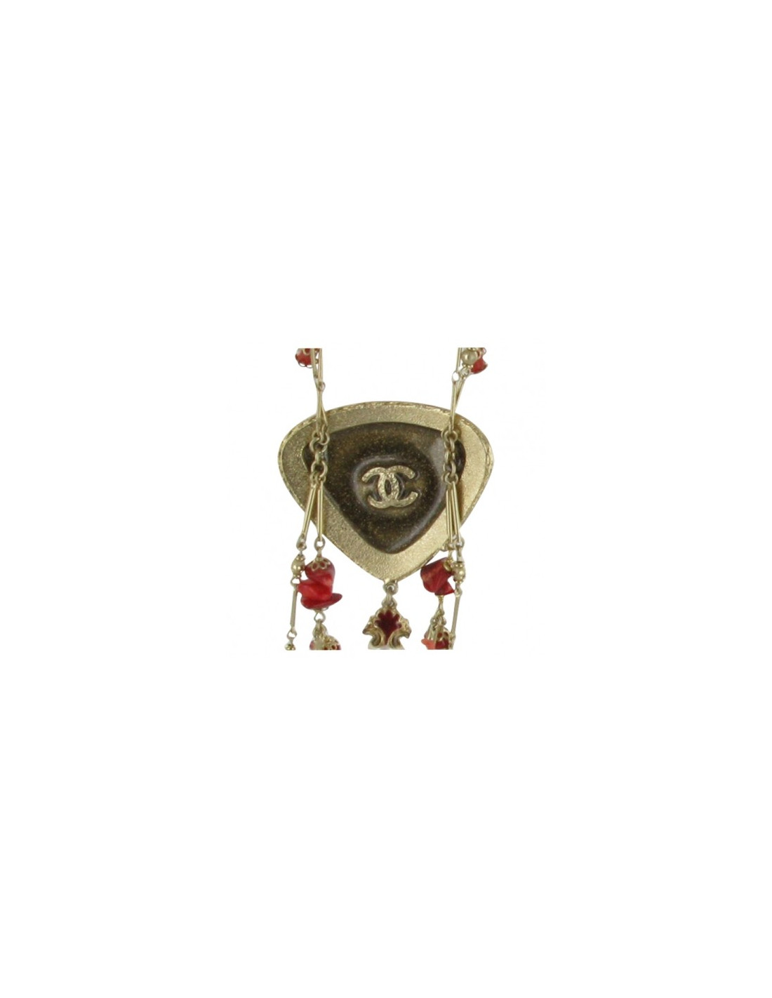 Nine ref: n ° 7 sublime necklace in real coral & Freshwater Pearl, gorgeous Medallion chanel. Total length: 116 cm longest part 1 length: 48 cm (neck) double string color pale gold beads of water soft coral pieces 4 'cc' chanel: 1 x 1. 5cm color: red box, tissue paper, chanel camellias