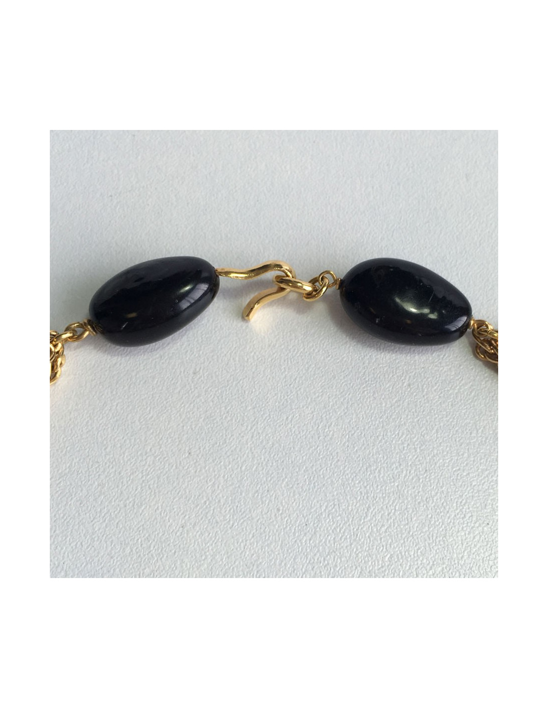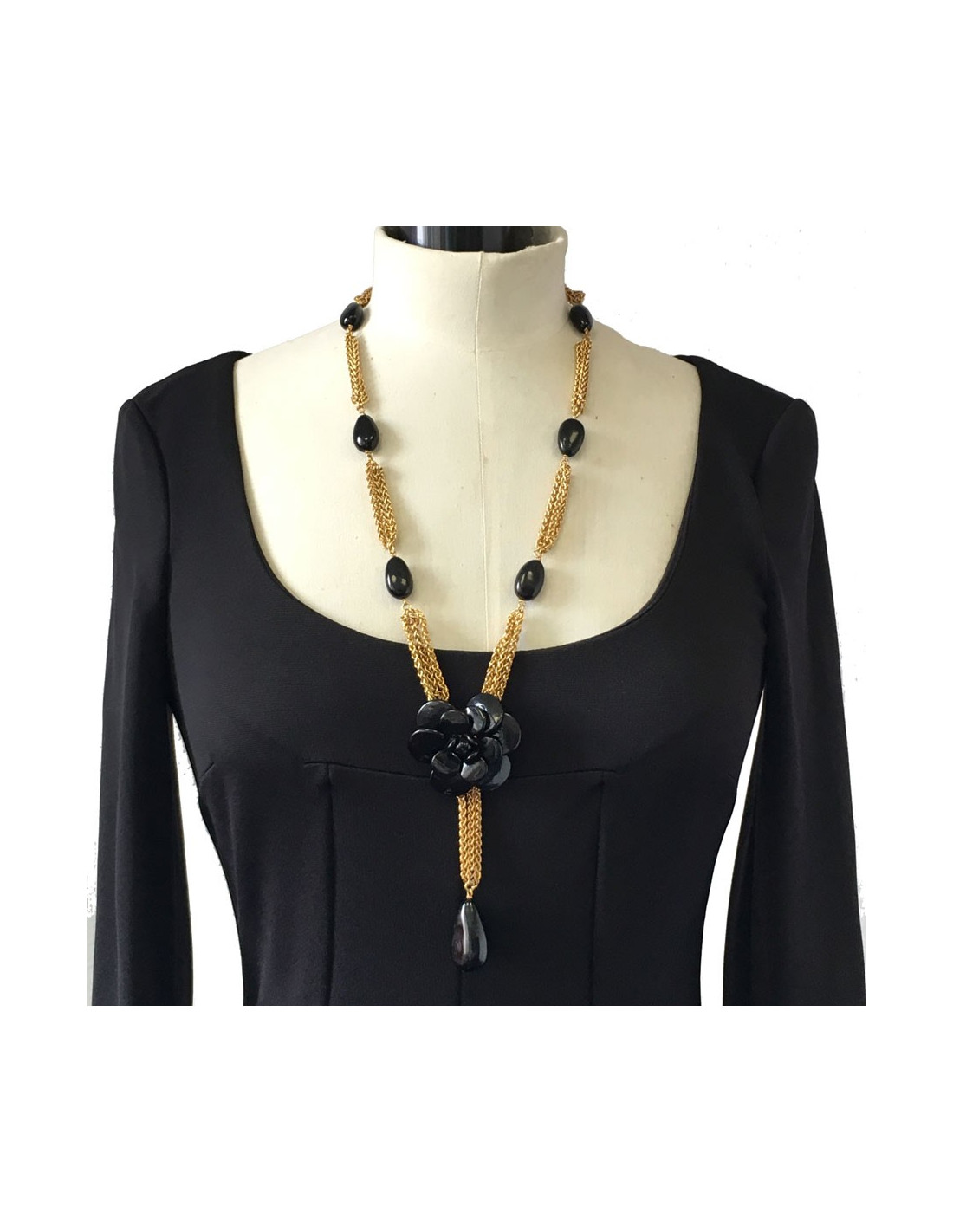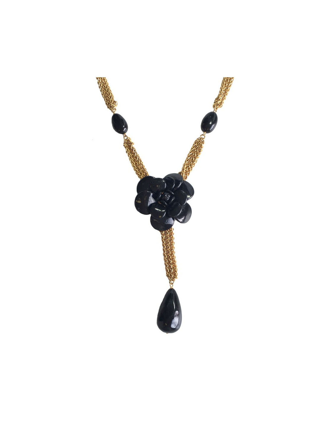 CHANEL Couture necklace qith gilded metal chain and black Camellia