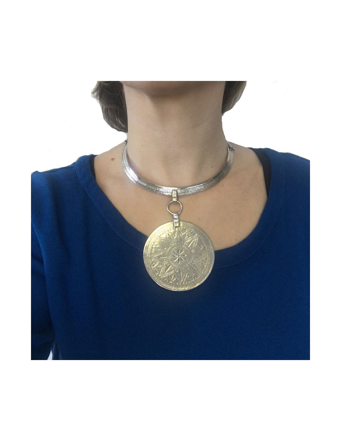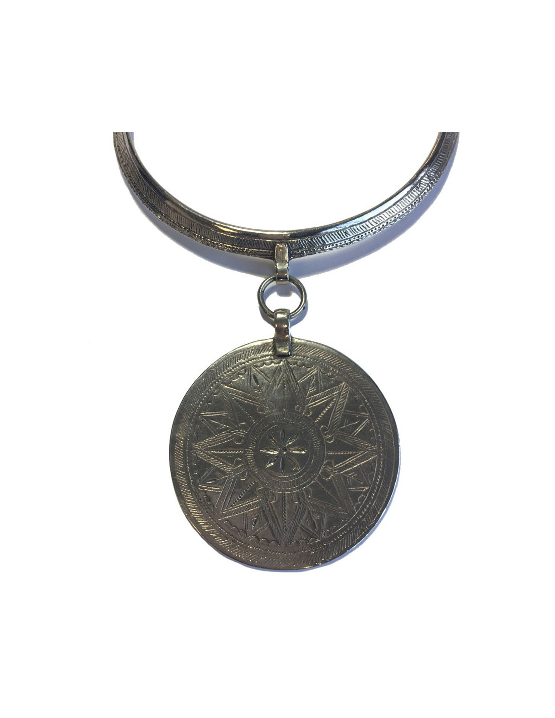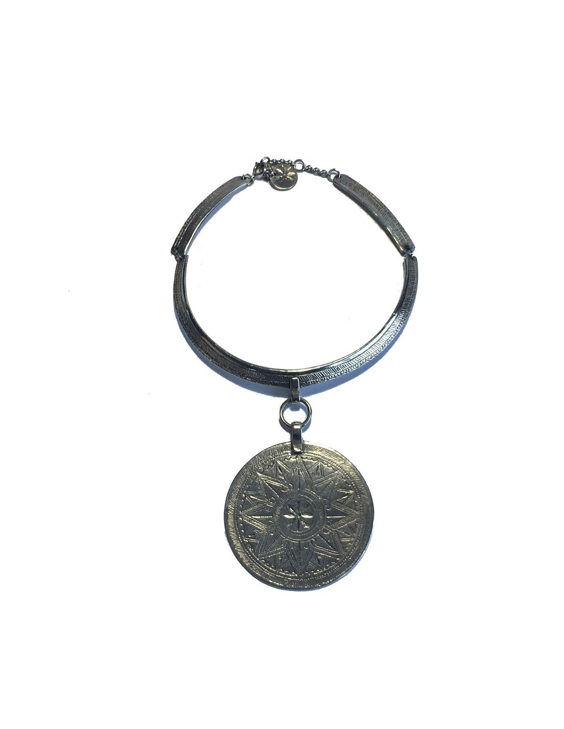 Collier ethnique de la Maison Scooter en argent avec un pendentif de forme circulaire. En très bon état.