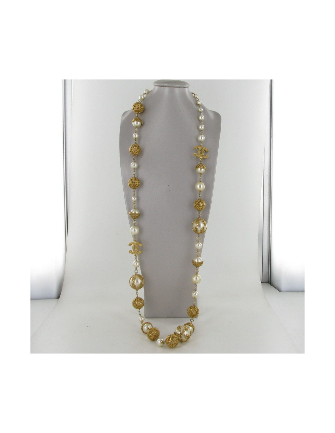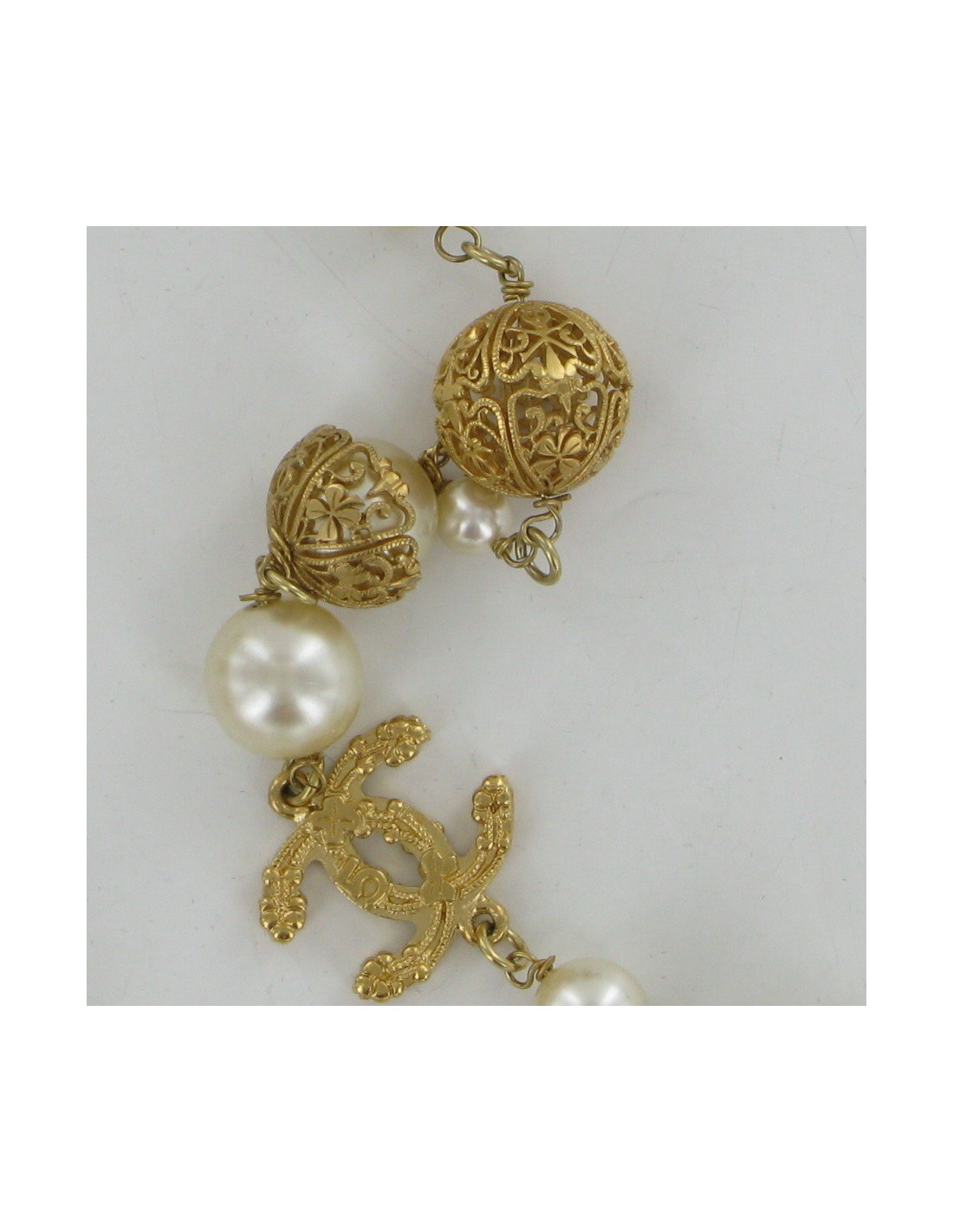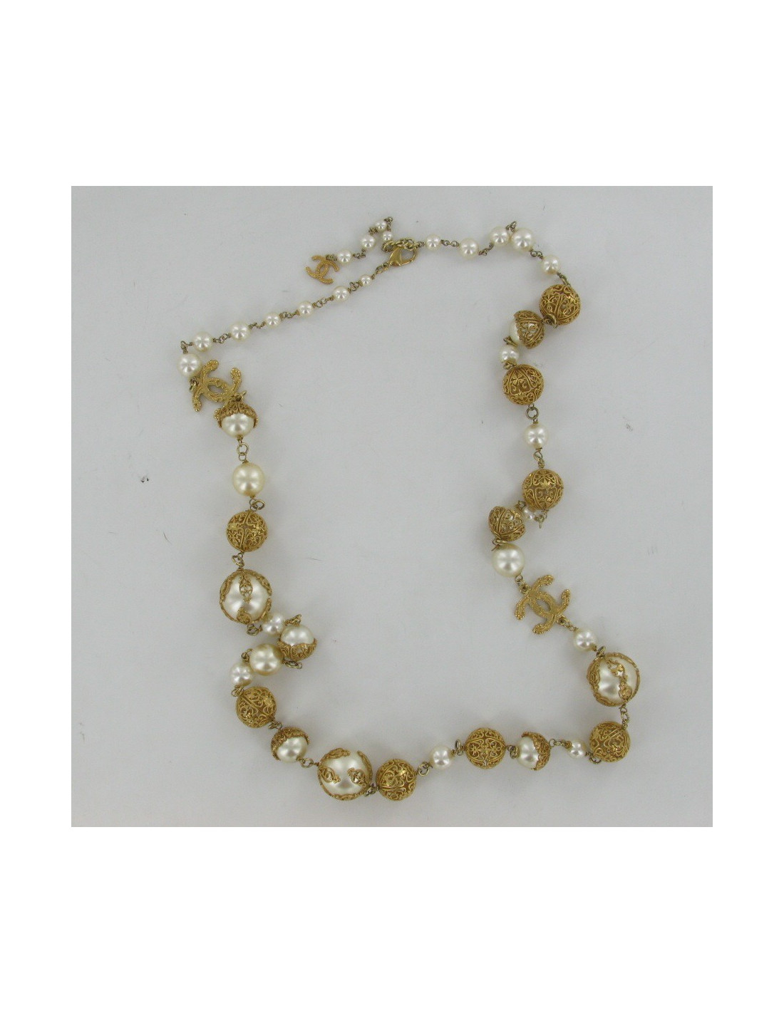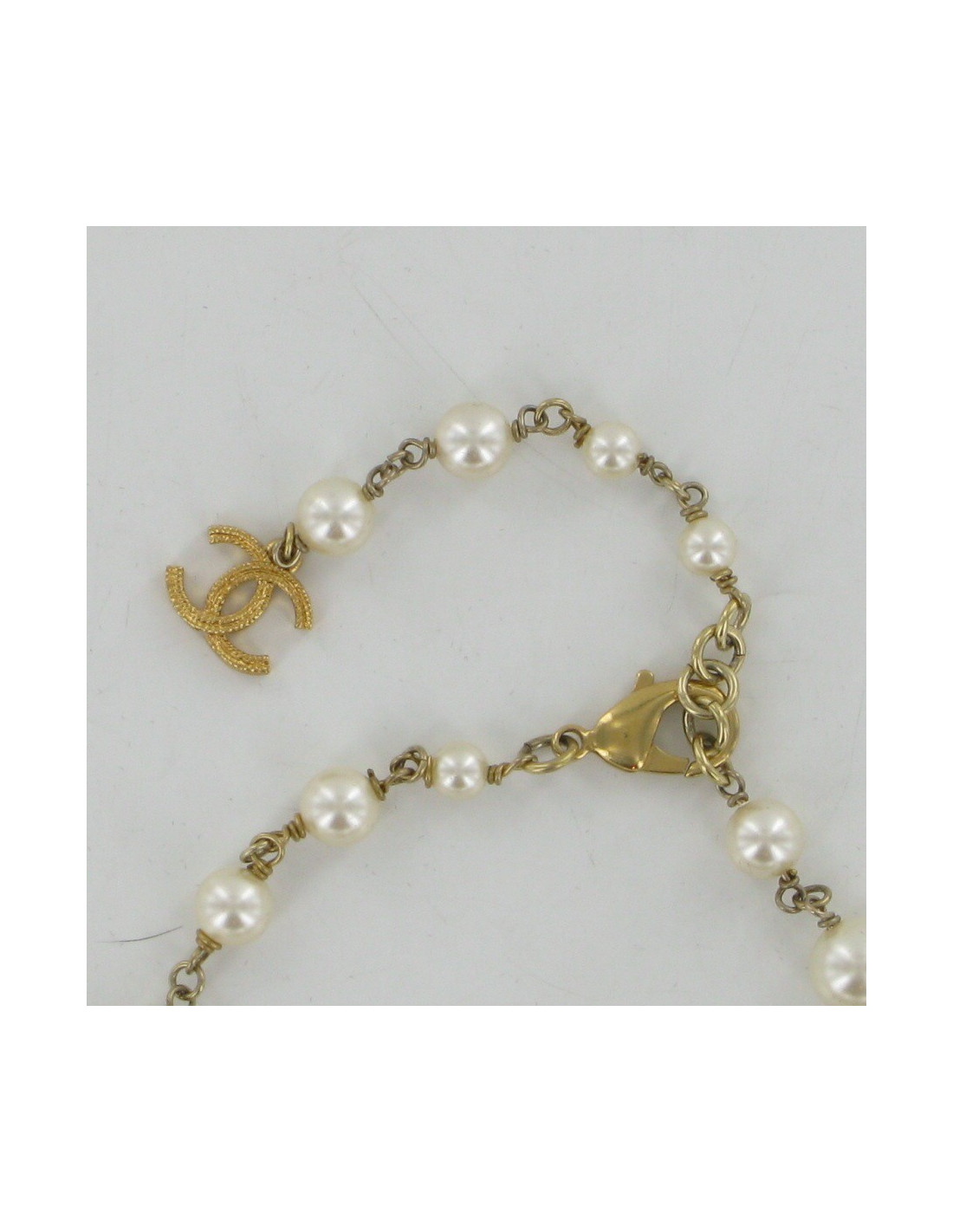 CHANEL Pearly beads necklace & metal Golden end