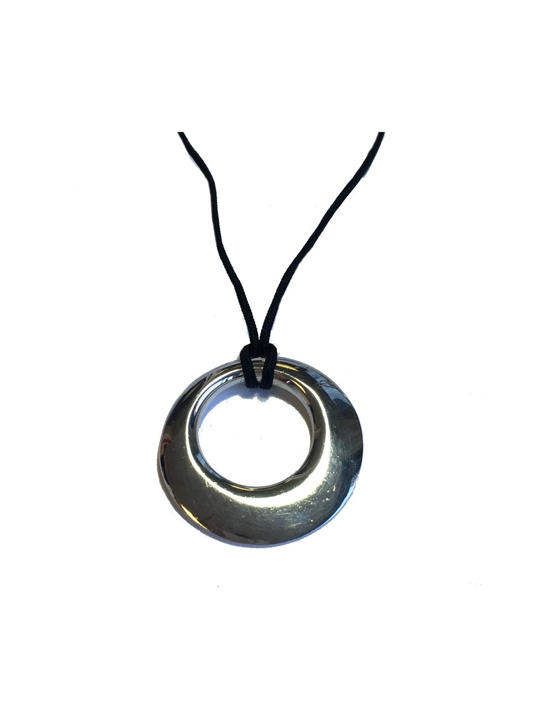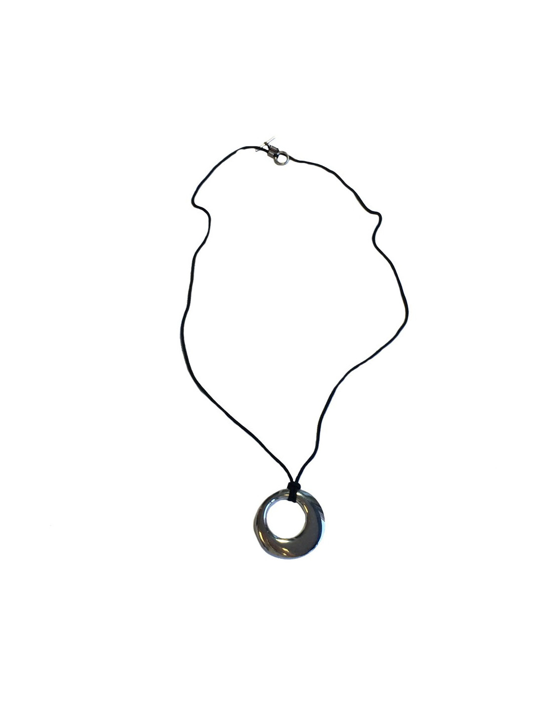 HERMES silver pendant necklace and black fabric link