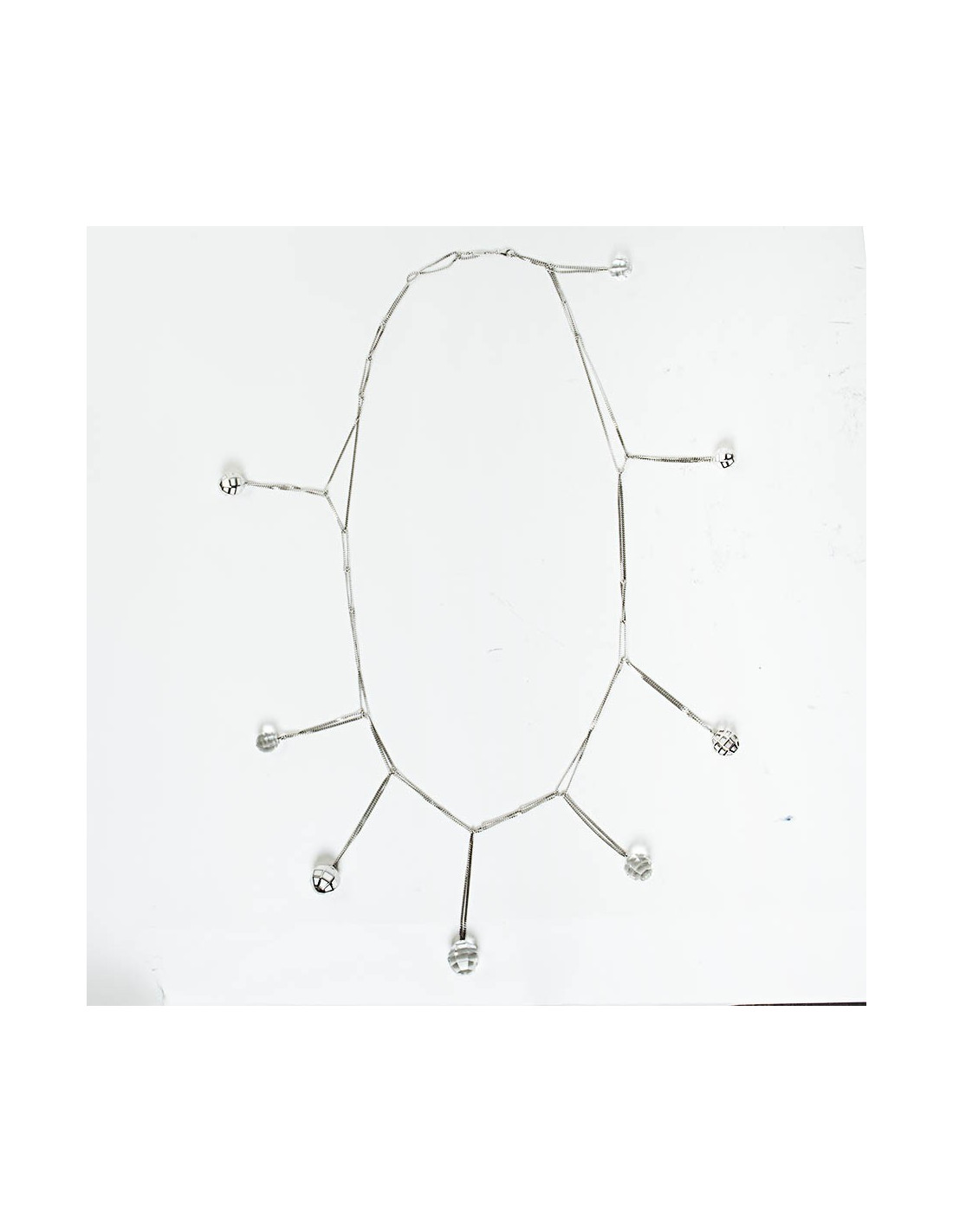 Exceptional necklace numbered BACCARAT collector, embellished with tassels way in Crystal, openwork silver and white enamelled silver disco balls.