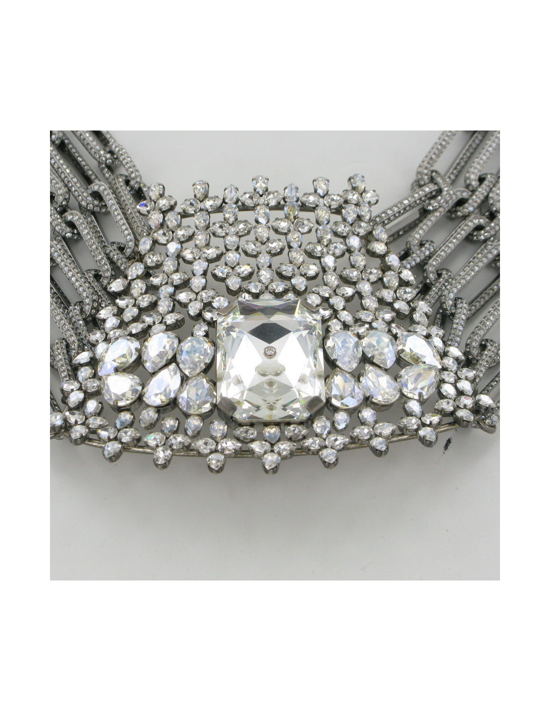 String big links silver metal studded with Rhinestones, jewel set with different sizes of Swarovski stones.