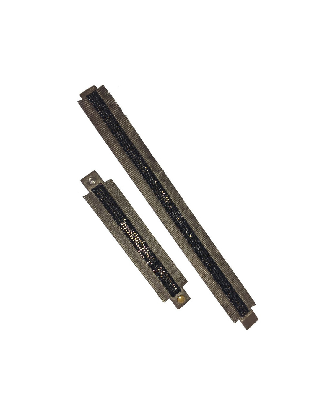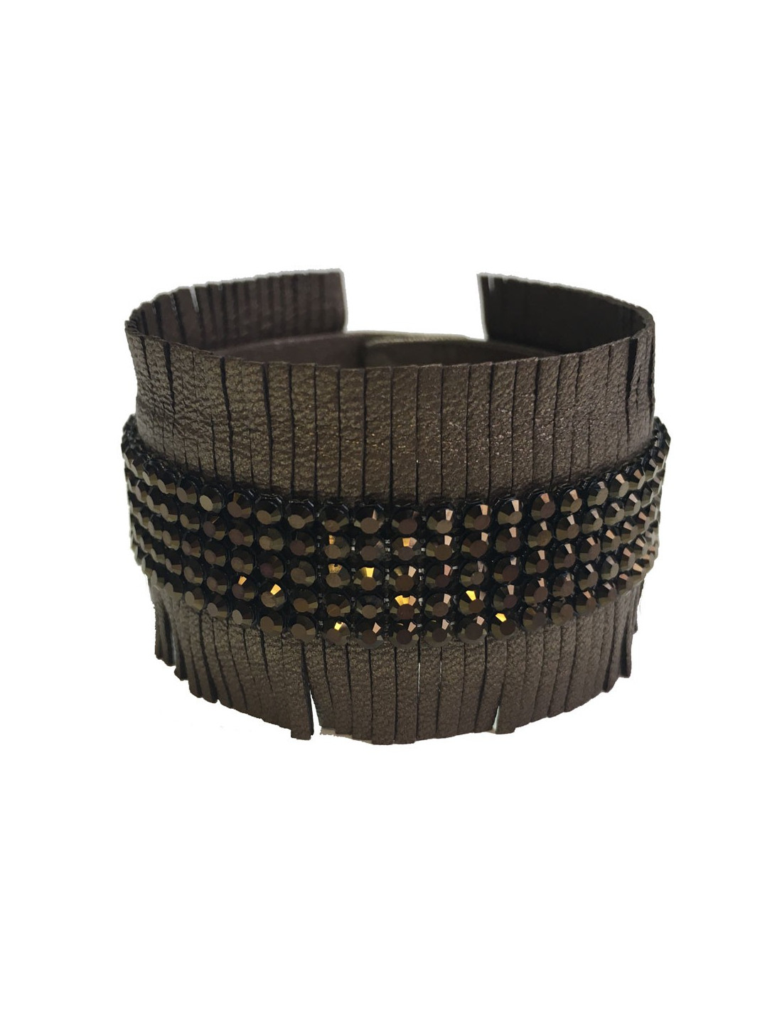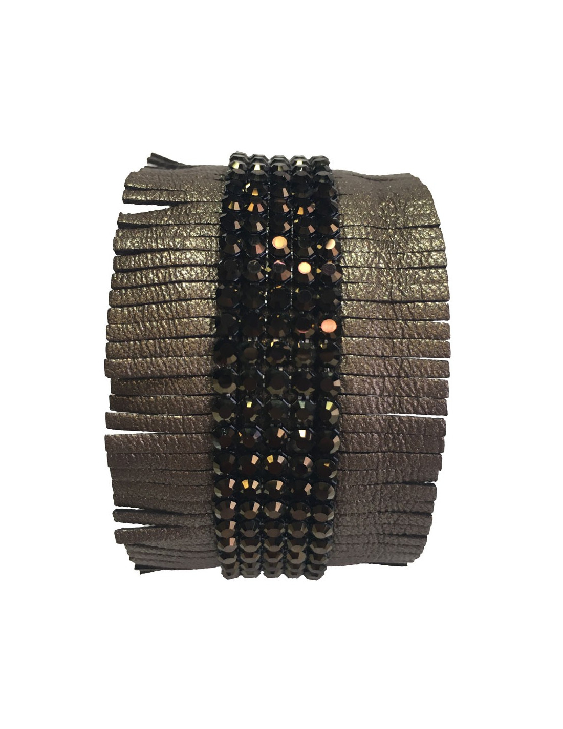 Couture collection by Swarovski, superb Daniel Swarovski set including a bronze leather choker and fringed bracelet set with 4 rows of dark brown rhinestones.