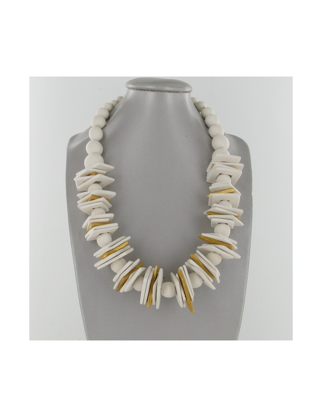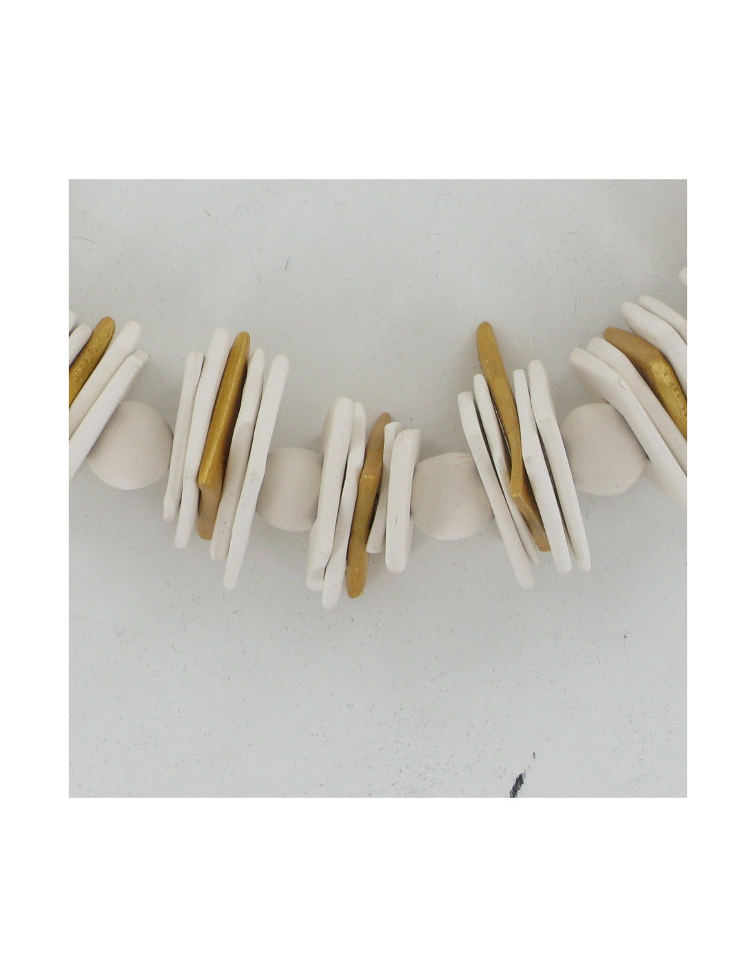 "I create jewelry entirely made with elements in ceramic to let in the natural state as they are out of the oven." I add sometimes a splash of color or a bit of gold or silver to enhance or illuminate the necklace and the person who wears it".