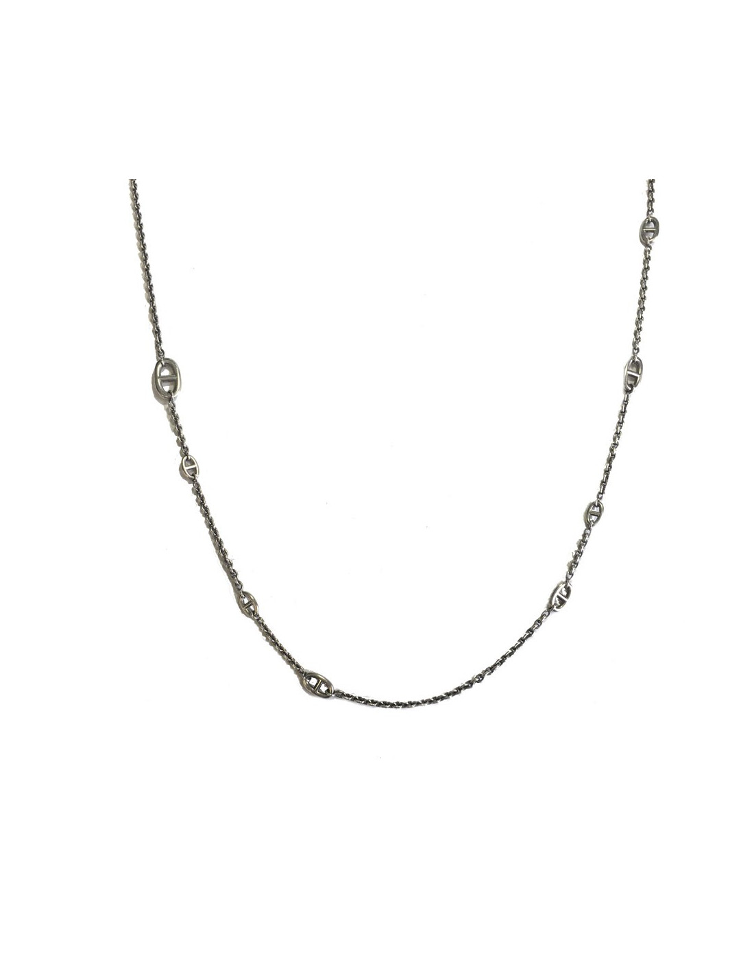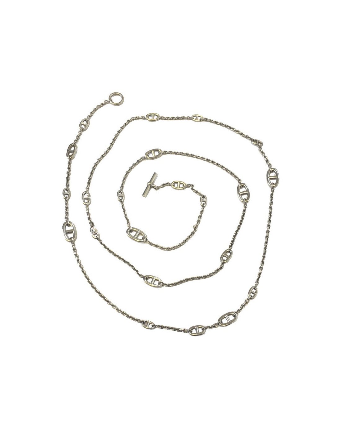 Sold NECKLACES HERMES Jump H multi silver long necklace HERMES 33630 2,200.00 € HERMES Jump H multi silver long necklace Model :Jump H multiCondition : very goodMaterial : sterling silver 925Color : silverMade in FranceOriginal box: yes, box and Hermès dustbagLength : 111 cm Advantage Valois Vintage Paris : comes in its original dustbag and Hermès box. View
