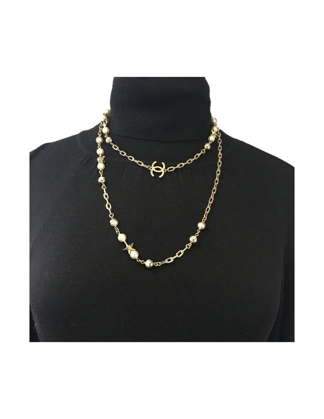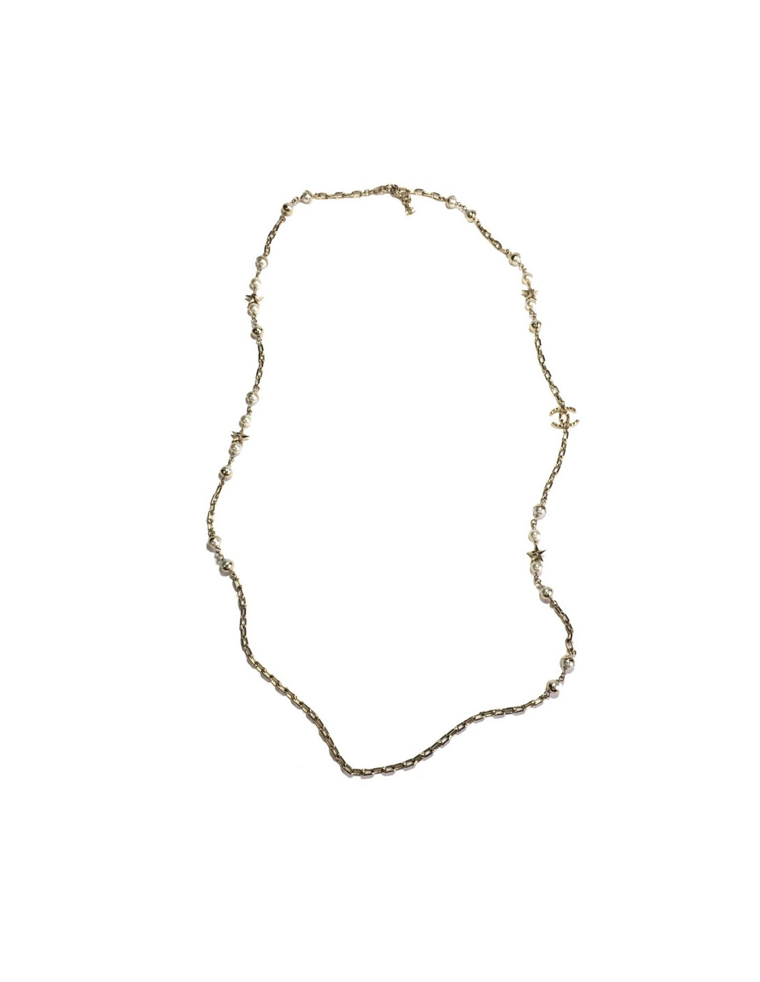 Chanel necklace in gold, pearls, pearly metal, gold CC and gold stars. Never worn.