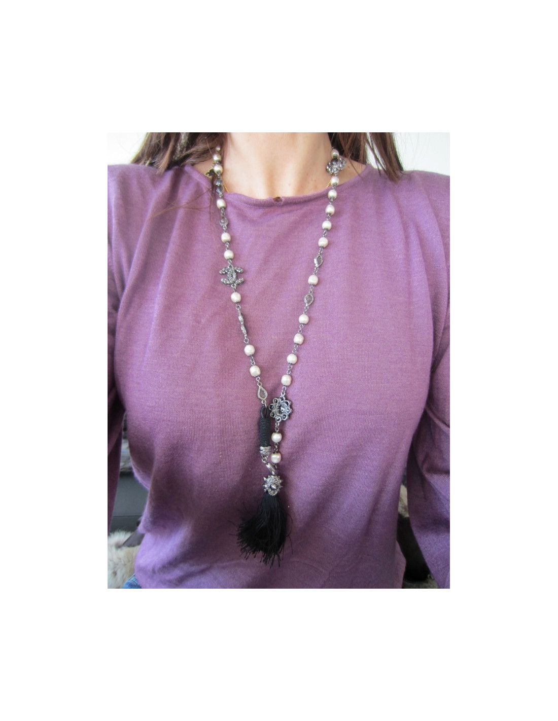 Black long necklace tassel CHANEL