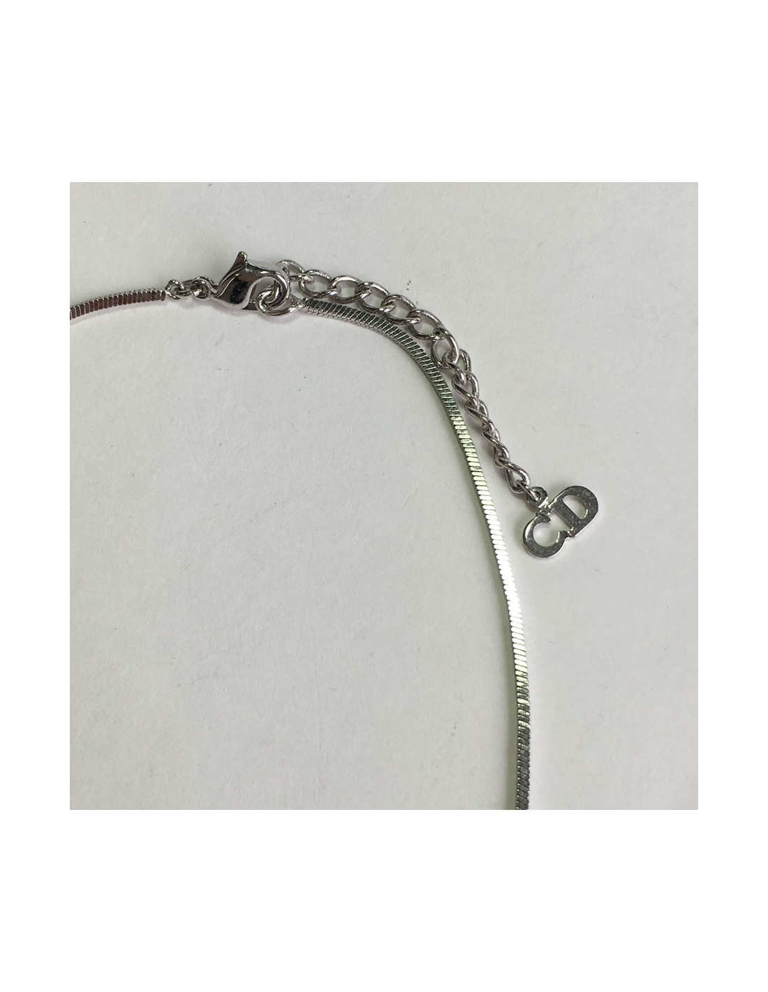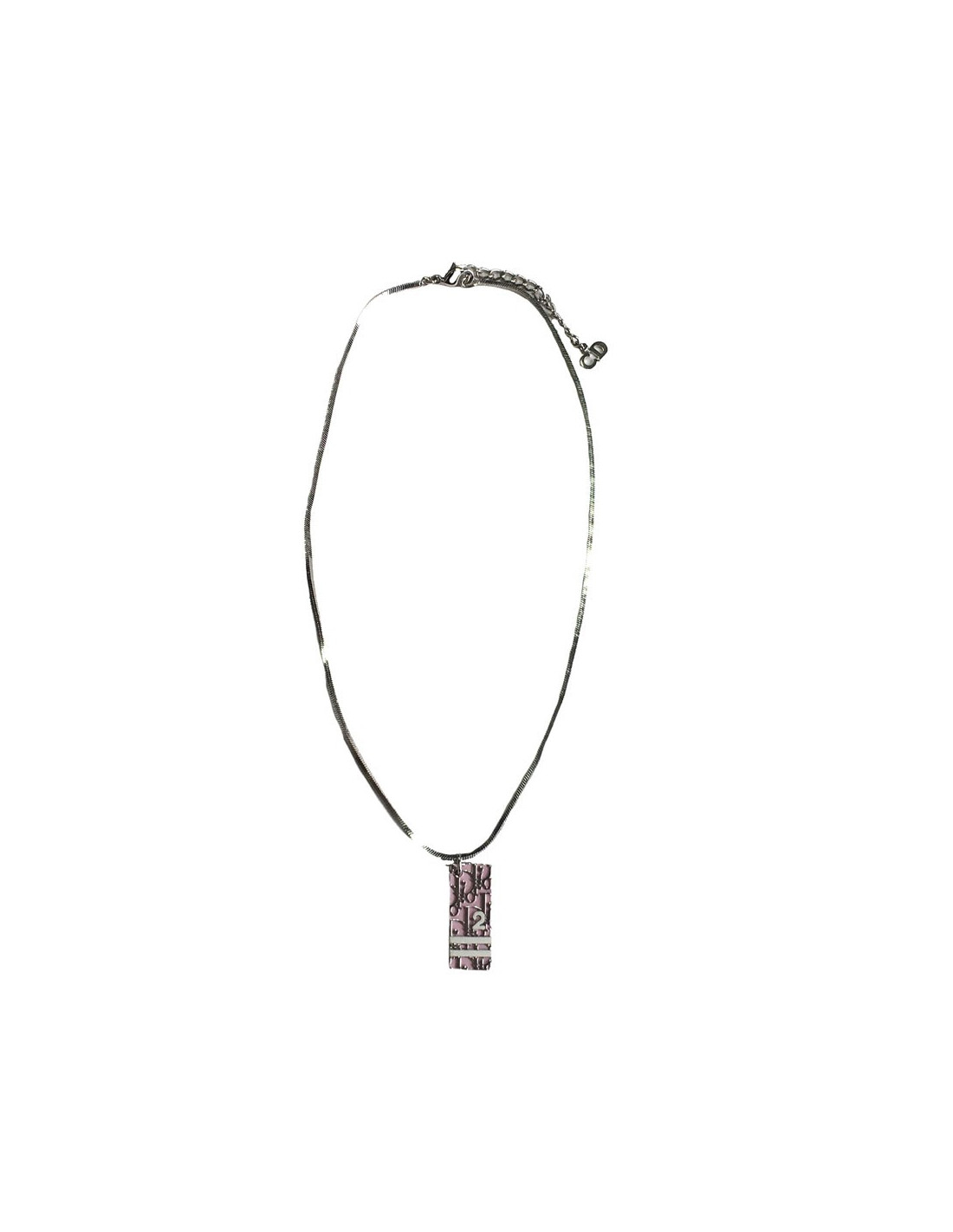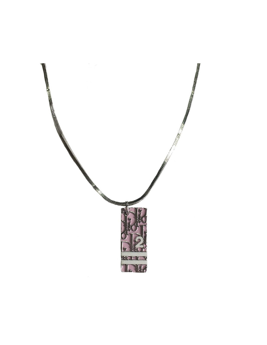 Necklace Dior flat mesh in silver metal, pendant monogram in silver metal and enamel pink.