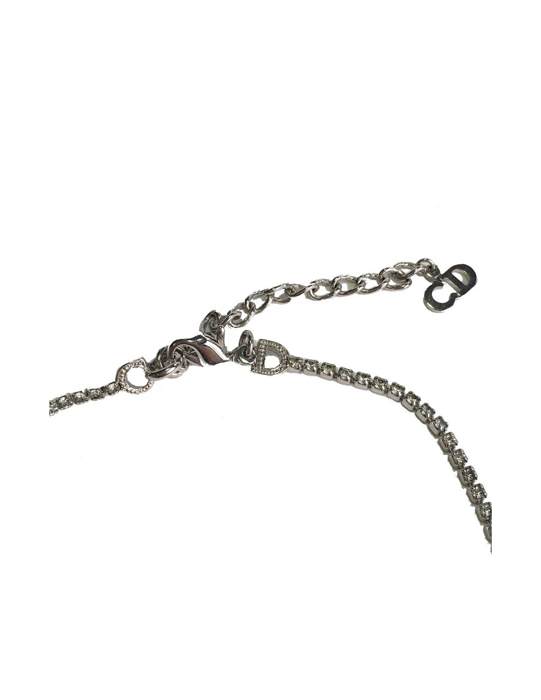 Collier DIOR en métal argenté et strass