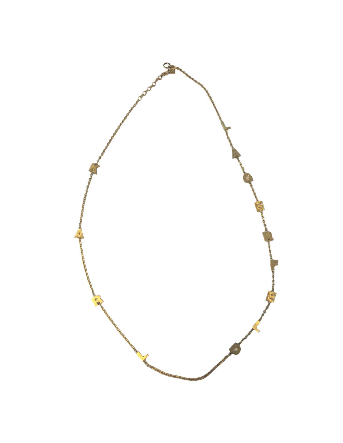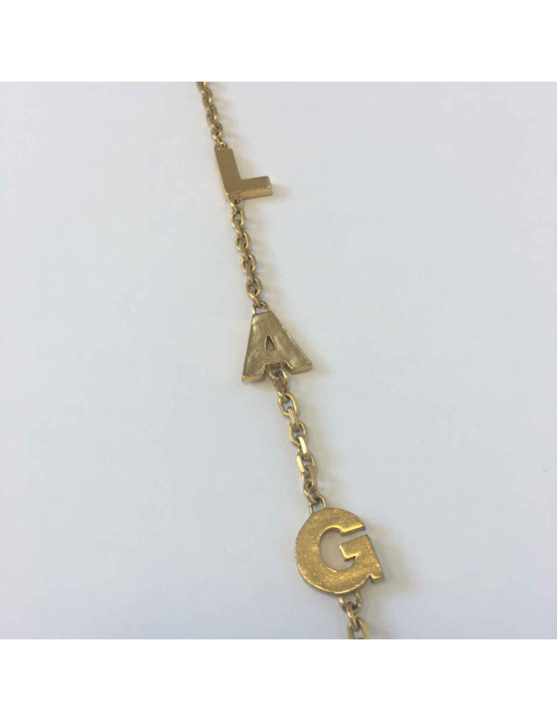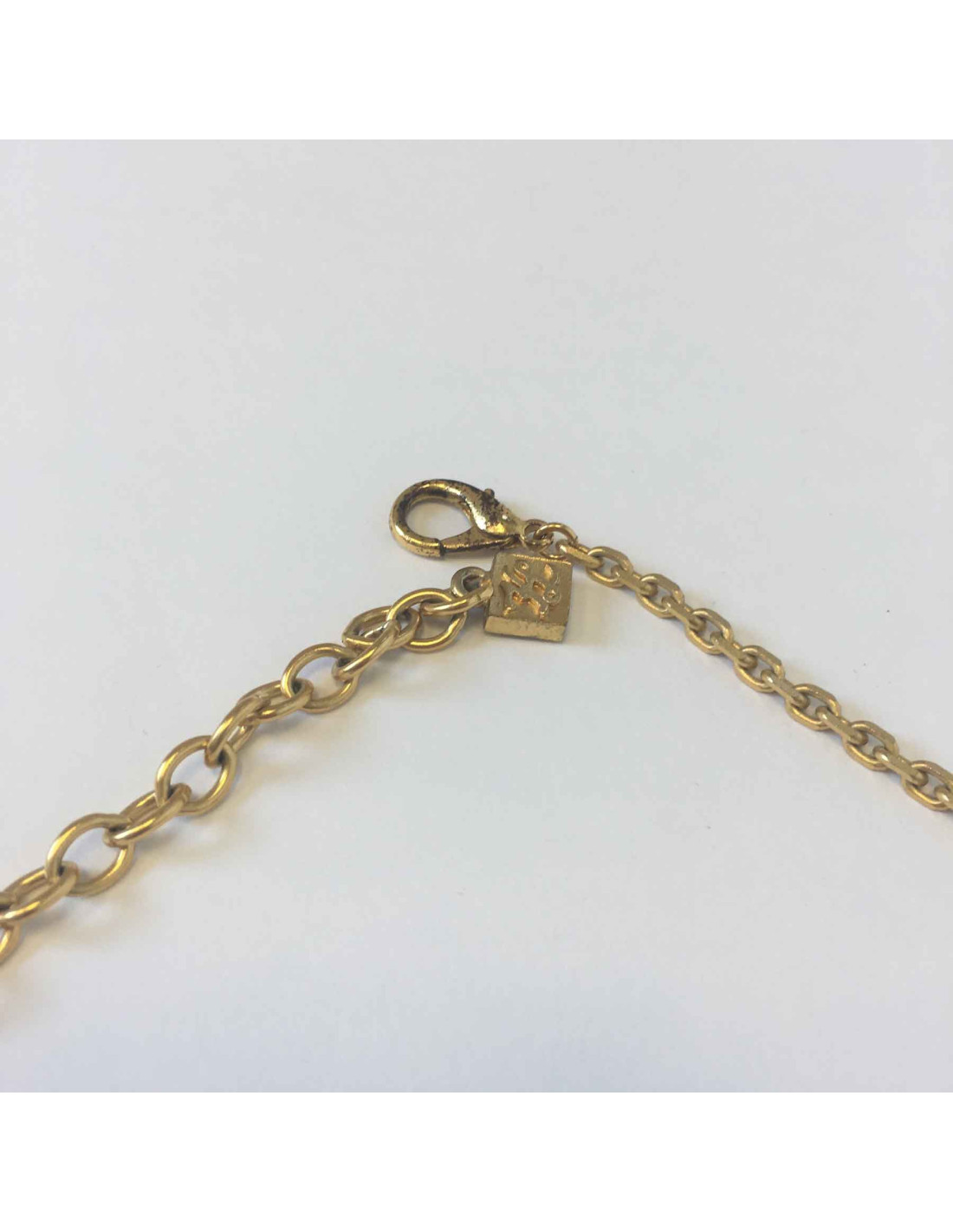 Last items in stock NECKLACES CHANEL pearl and gold bib necklace CHANEL 34334 2,850.00 € CHANEL mother-of-pearl beads and gold bib necklace Condition : very goodMade in FranceMaterials : metal, pearly beadsColor : goldMeasurements : length (adjustable) up to 40 cm, pendant : 15 cmHardware : gold finish metalStamp : yesYear : Spring 2002Details : CC pendant on the clasp, rigid choker with dangling beaded chains. Advantage Valois Vintage Paris... Add to cart