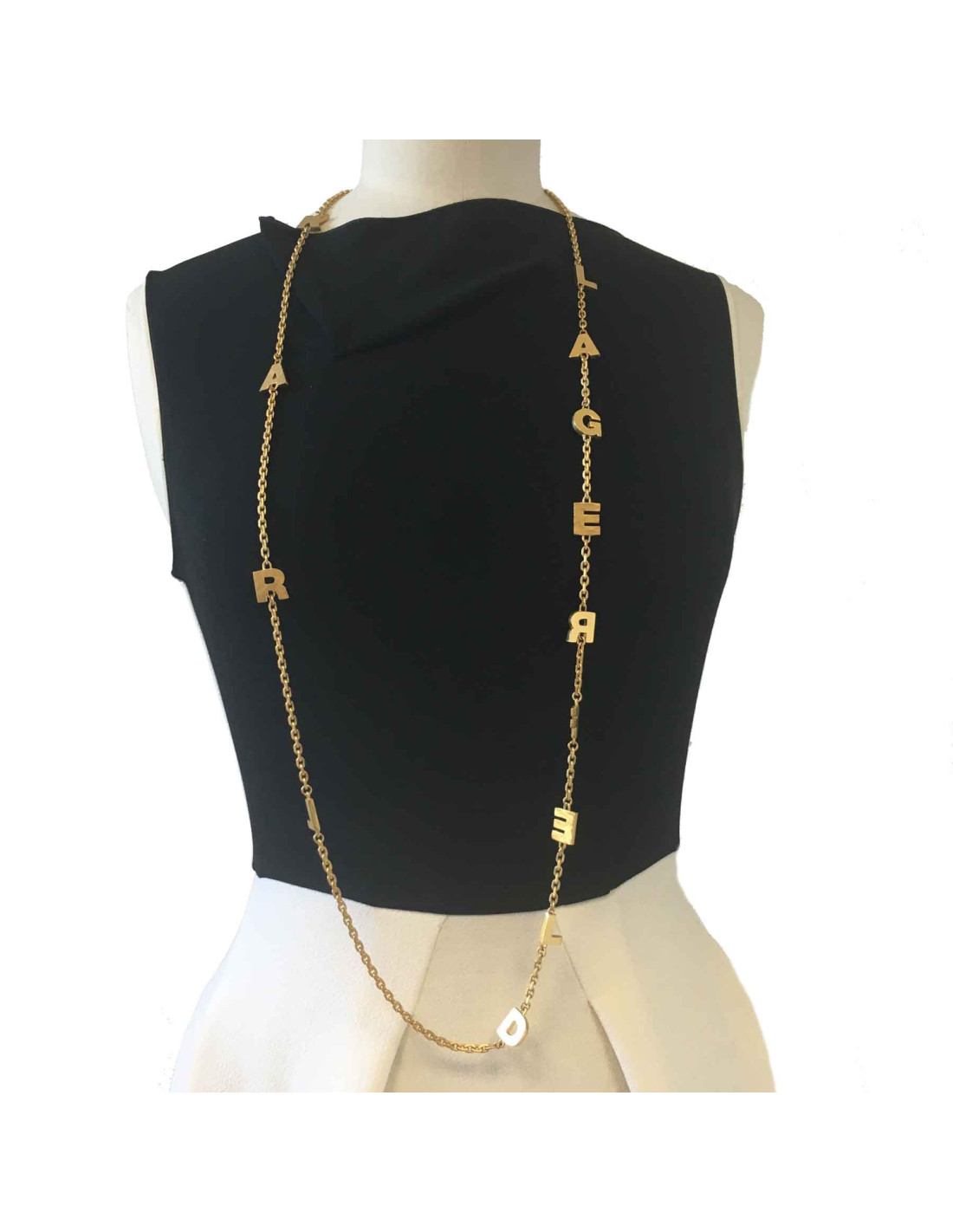 Last items in stock NECKLACES LANVIN by ALBERT ELBAZ black necklace LANVIN 25247 430.00 € LANVIN by ALBERT ELBAZ black silk, beads and rhinestones necklace Condition: very goodMade in FranceMaterials: silk, rhinestones, beadsColors: black, gunmetalMeasurements: total length : 104,5 cm, at its shortest: 82 cm, at its longest : 103 cmDetails: Lanvin long necklace in gunmetal embellished with black silk crepe, pearly pearls and pear-shaped... Add to cart