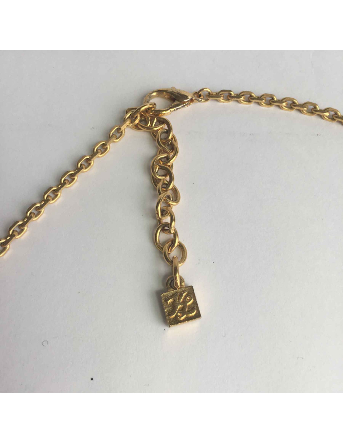 Last items in stock NECKLACES CHANEL collector Paris-New York necklace CHANEL 33322 1,890.00 € CHANEL collector Paris-New York necklace Métiers d'art 2019 Condition : very goodMade in FranceMaterials : metal, rhinestonesColors : gold, transparent, blue, green, redMeasurements : total length of chain : 56 cm (asjustable by 10cm) , CC : pendant : cmStamp : yesYear : 2019Hardware : gold finish metalKarl Lagerfeld's last runway Advantage VALOIS... Add to cart