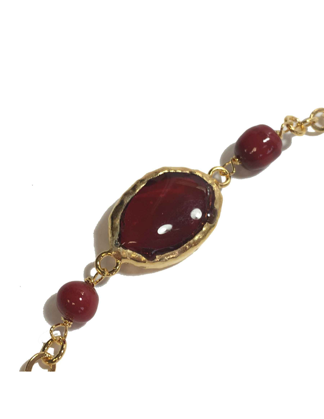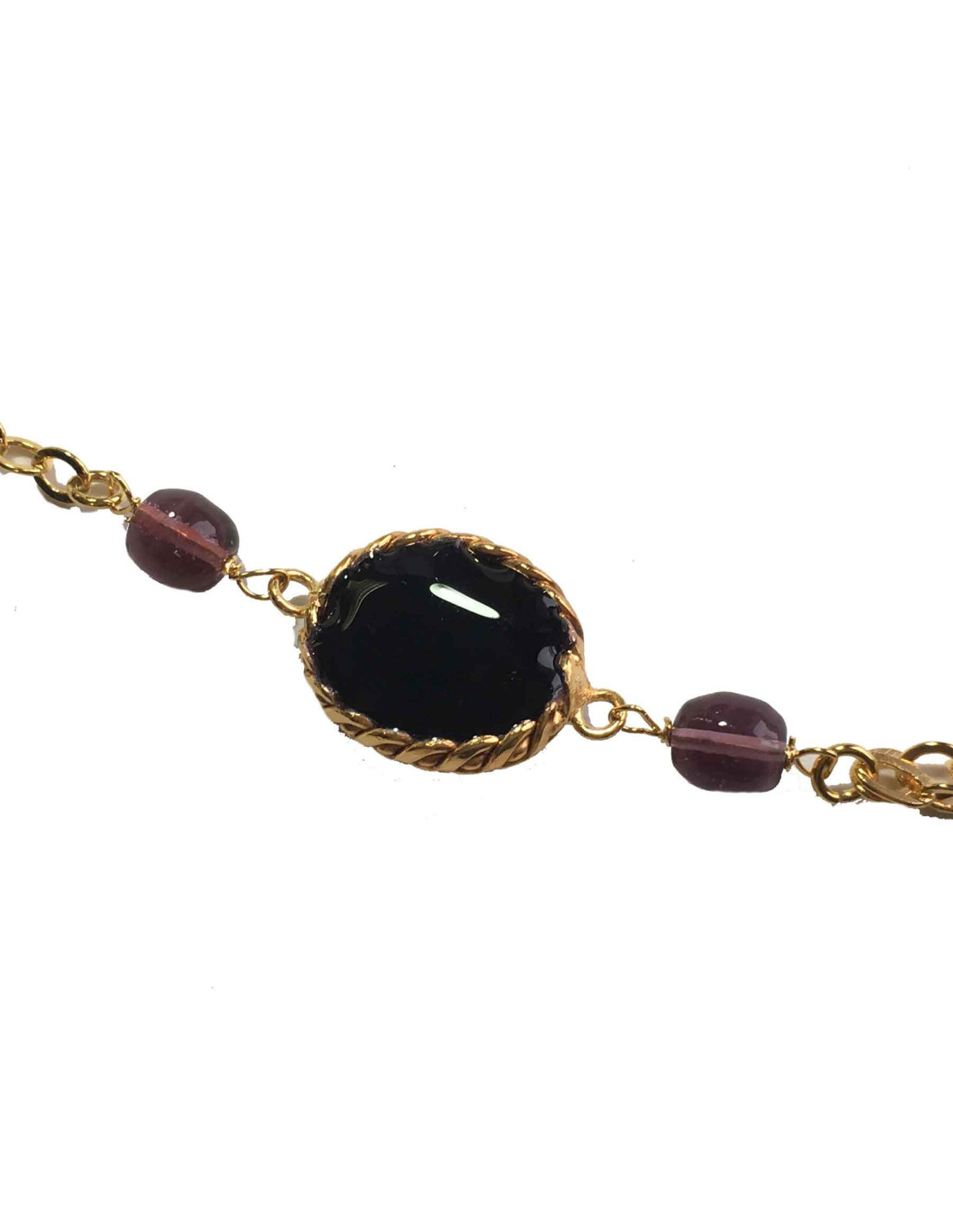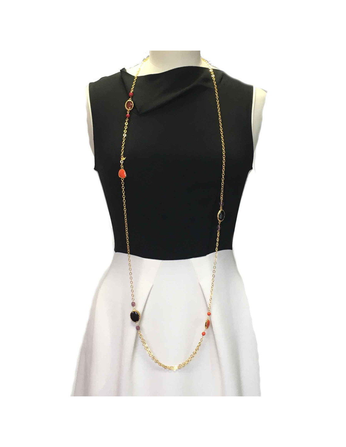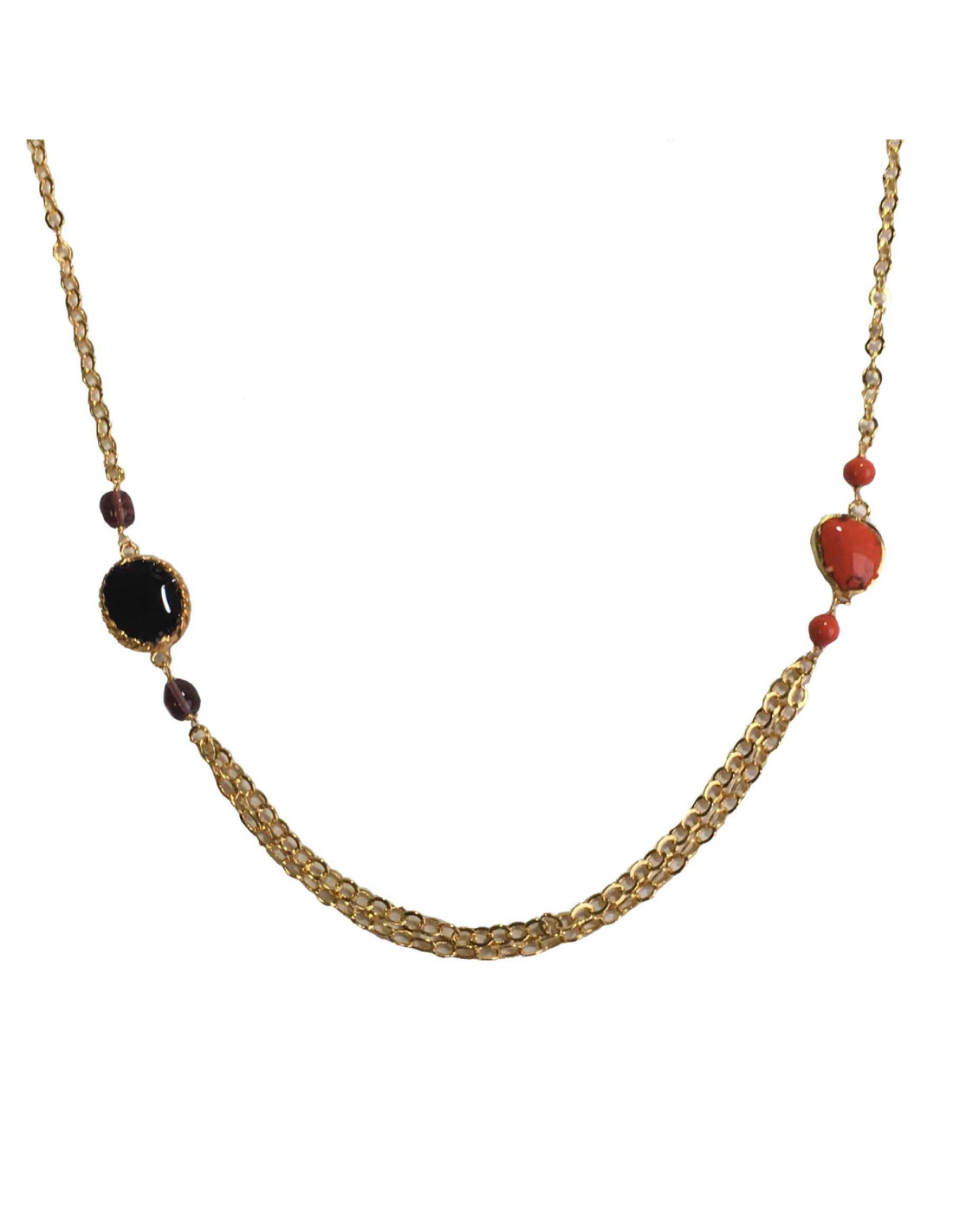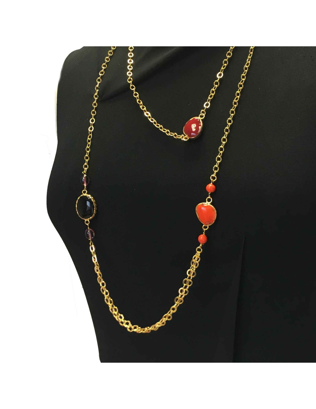 Details : Beautiful Marguerite de Valois long necklace in fine gold-plated metal and molten glass in various colors: orange, violet, burgundy. Made in France by the artisans of the Marguerite de Valois brand, who have created jewelry in the past (over 40 years) for the most prestigious fashion houses, such as CHANEL, GIVENCHY, YSL, GAULTIER etc...