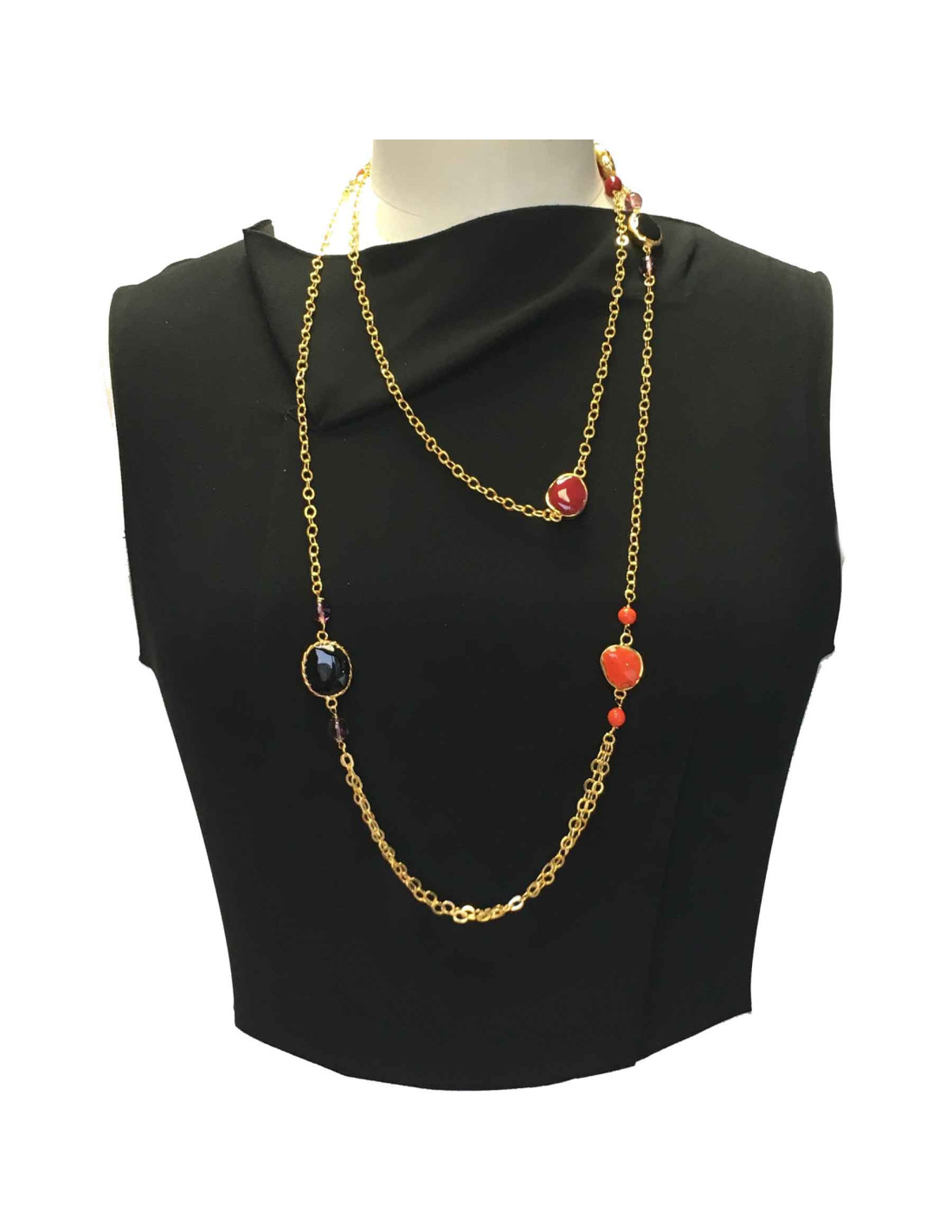MARGUERITE DE VALOIS gilded metal and multicolor molten glass long necklace