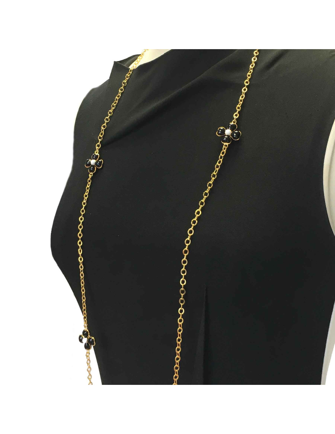Last items in stock NECKLACES CHANEL Forever necklace curb chain CHANEL 35184 1,900.00 € CHANEL Forever necklace curb chain ready to wear 2021 Condition : very goodMade in FranceMaterials : metal, resin, rhinestonesColors : pink, goldMeasurements : total length 83 cmHardware : gold finish metalStamp : yesYear : Spring ready to wear 2021Details : Forever necklace with curb chain, adjustable as desired around the neck. Advantage Valois Vintage... Add to cart