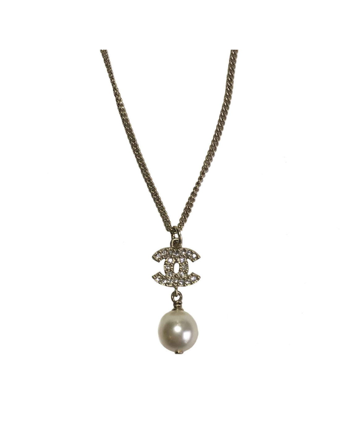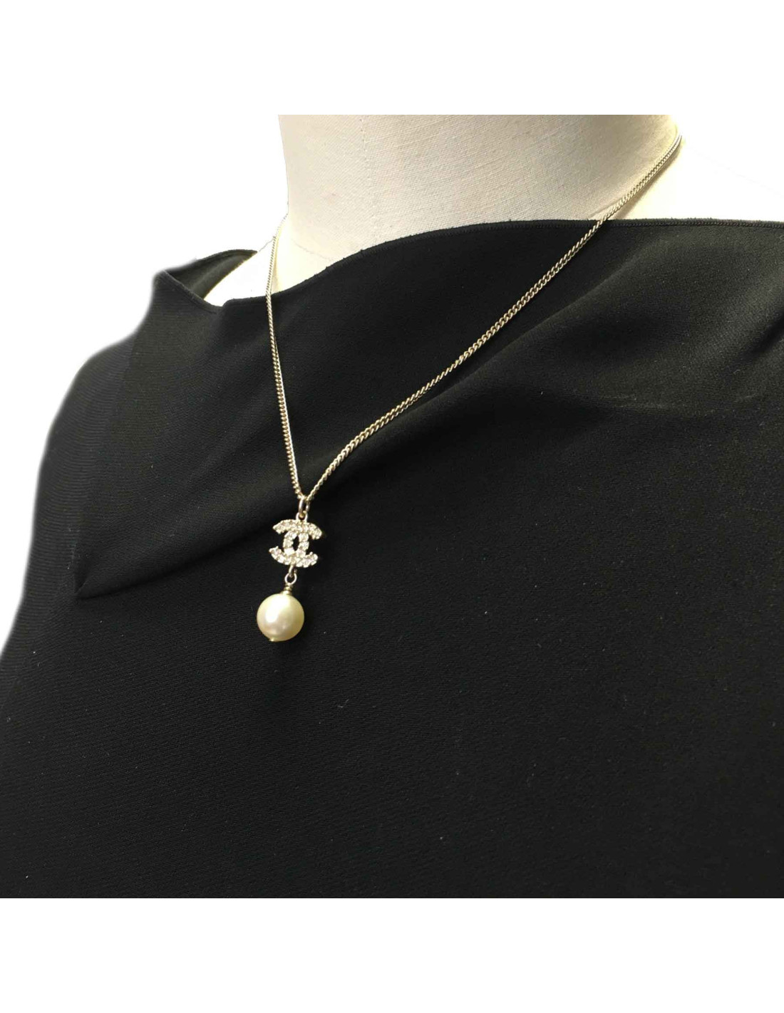 Collier CHANEL CC strass, perle nacrée et métal doré